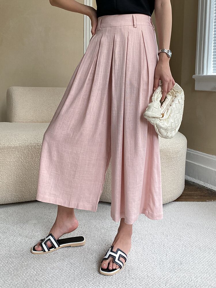 [EWQ] プリーツワイドレッグパンツソリッドカラールーズウエストポケットパンツ夏潮 16U572 サマー 夏物 ワイドパンツ