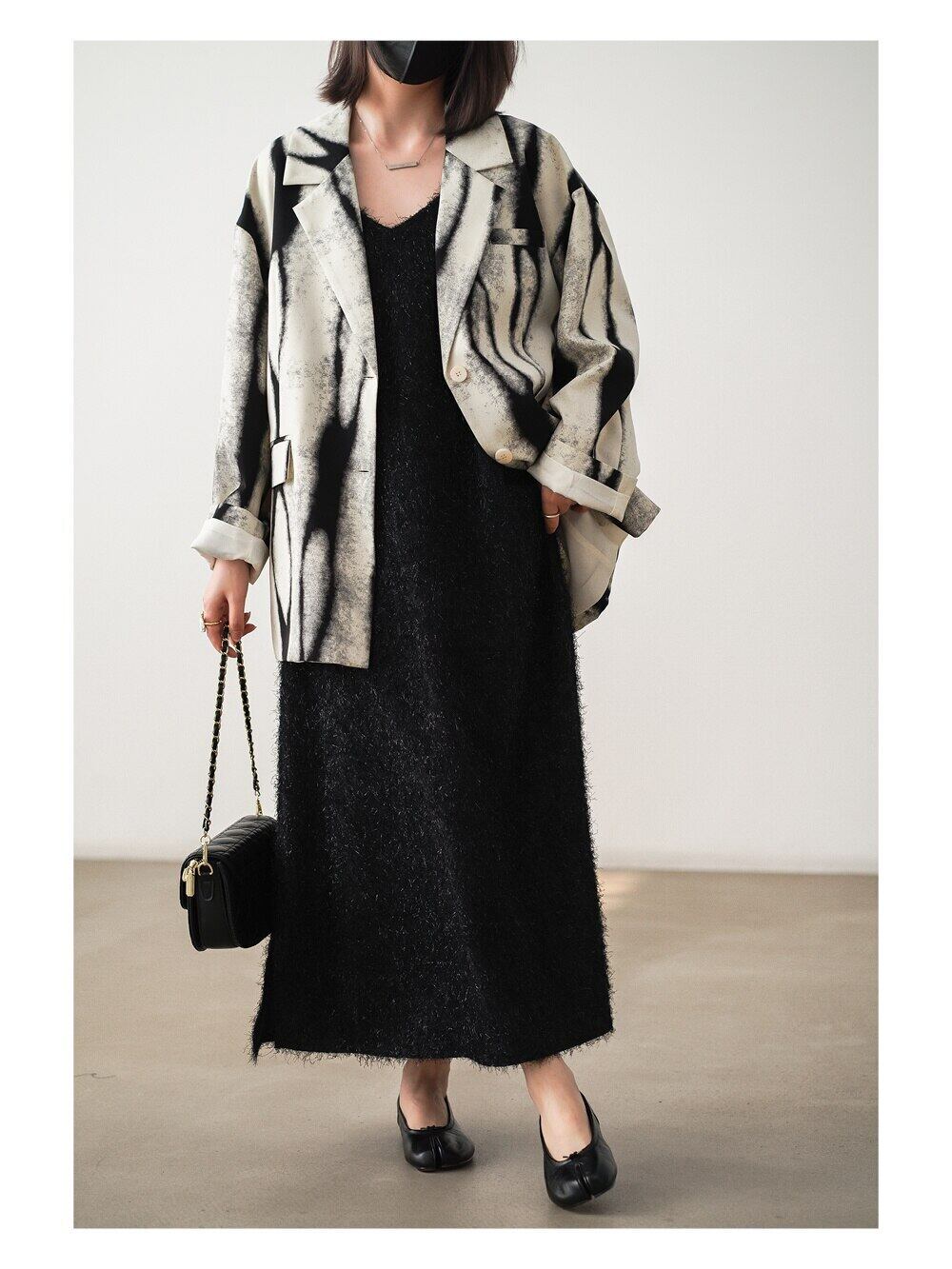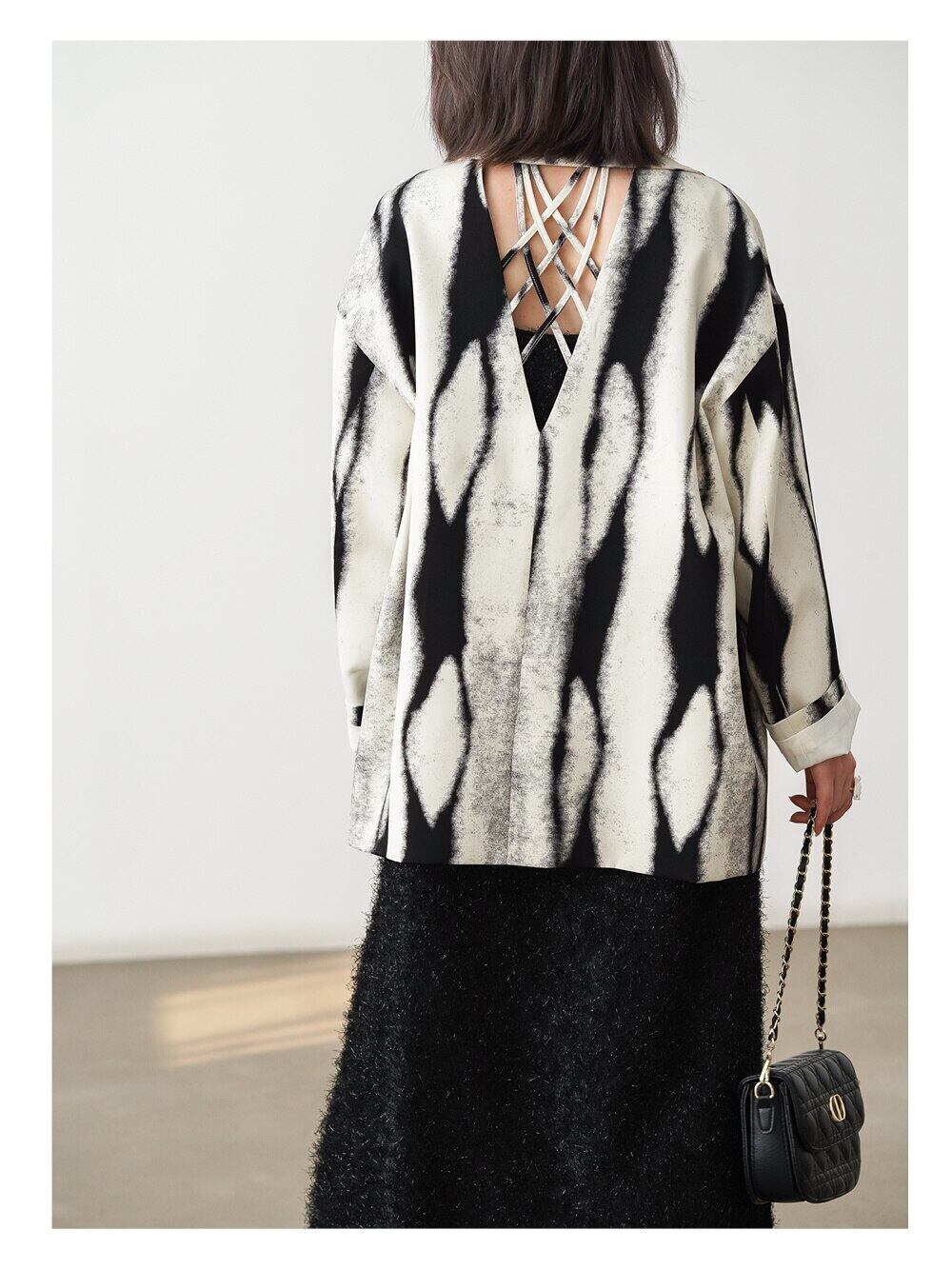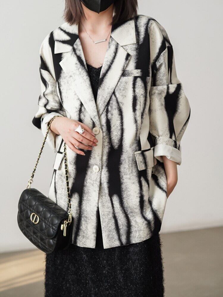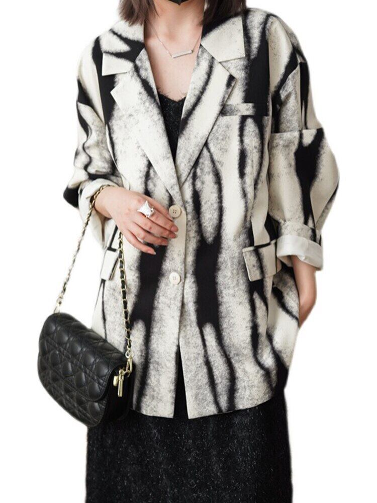 [EWQ] バック中空アウト織薄手ブレザーコート白黒コントラストカラースーツジャケット夏潮ブレザー ホワイト ブラック サマー 夏物