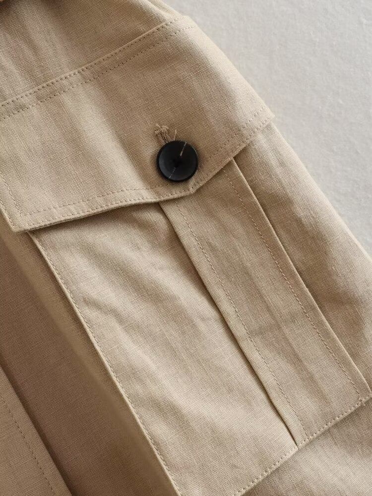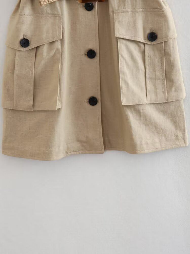 [EWQ] ベルト付きリネンコットンベストボタン装飾ポケットパッチワークルーズノースリーブジャケットサマートップ 夏物 ハーネス