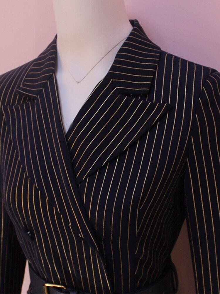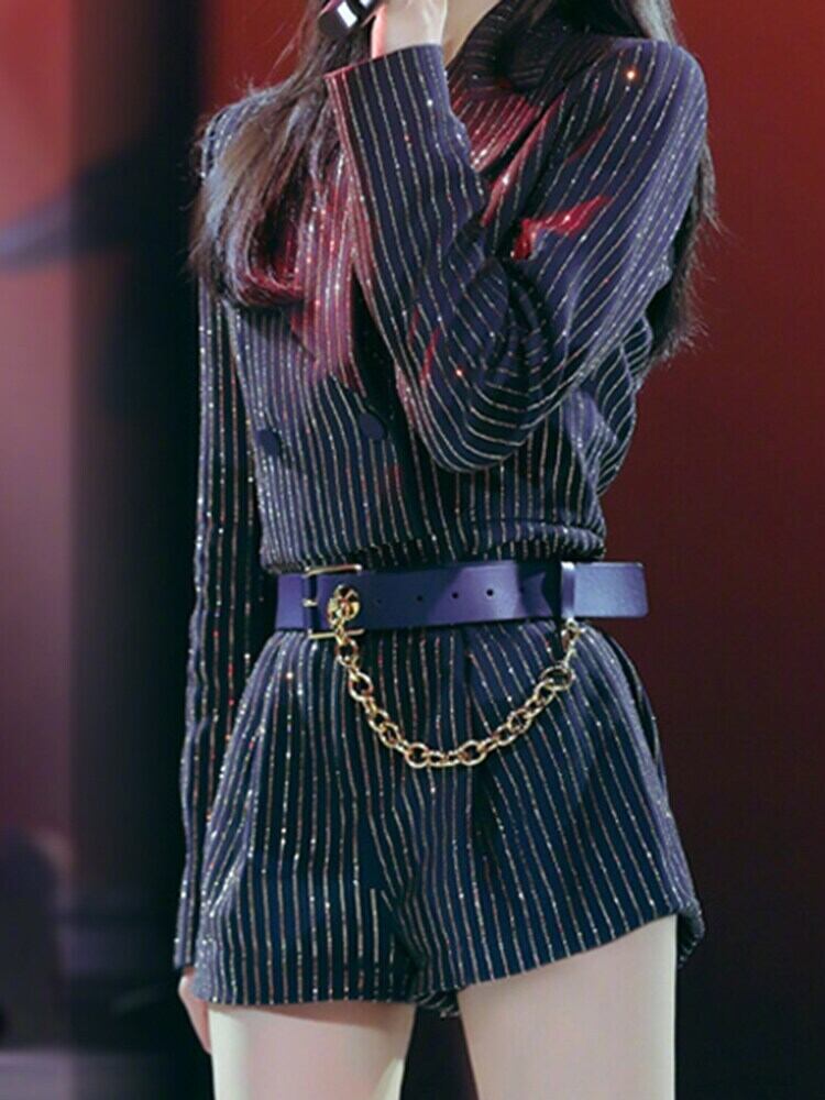 [EWQ] スーツショートジャンプスーツ高級長袖ゴールドストライプビーズチェーン付きベルト遊び着夏潮 ロング サマー 夏物 ハーネス