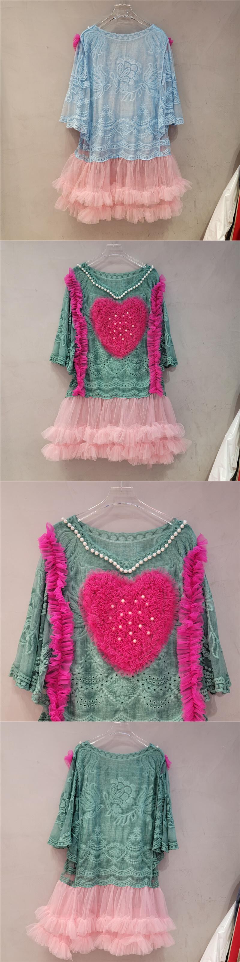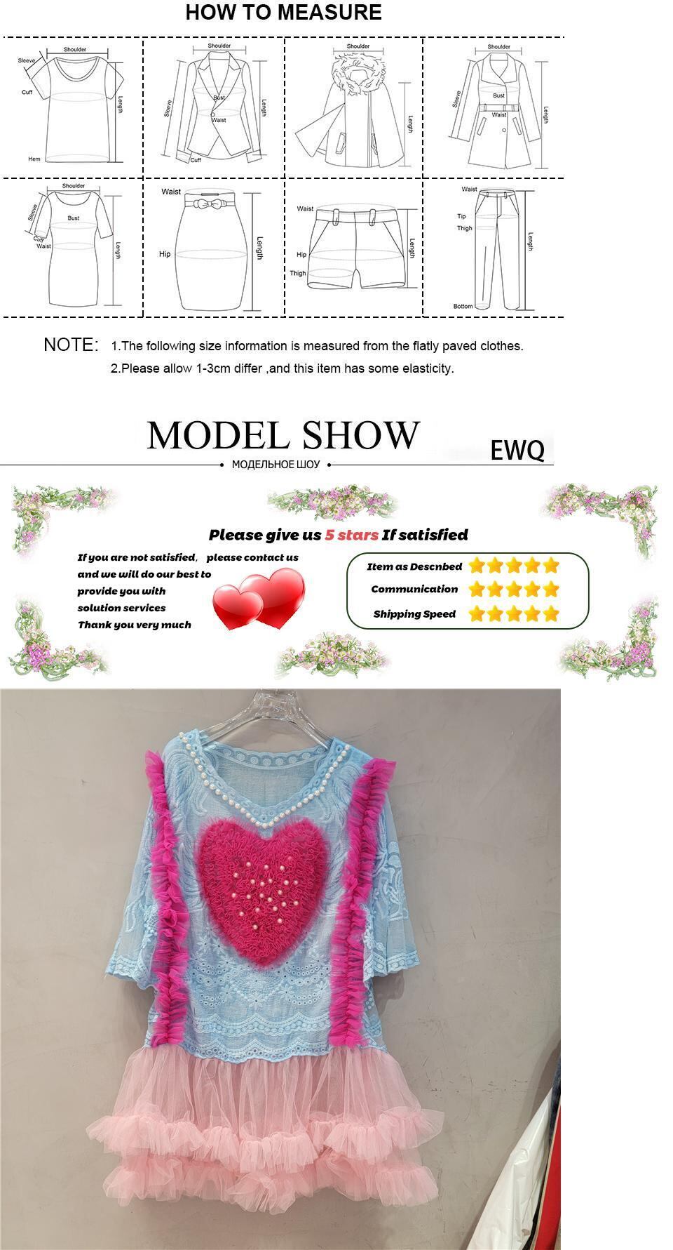 [EWQ] メッシュ愛パッチワーク薄手ドレス甘いビーズレースフックフラワー半袖ドレス夏潮 Vestidos ショート ハーフスリーブ 大人ガーリー スウィート キュート カジュアル サマー 夏物 フラワーデザイン