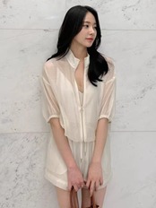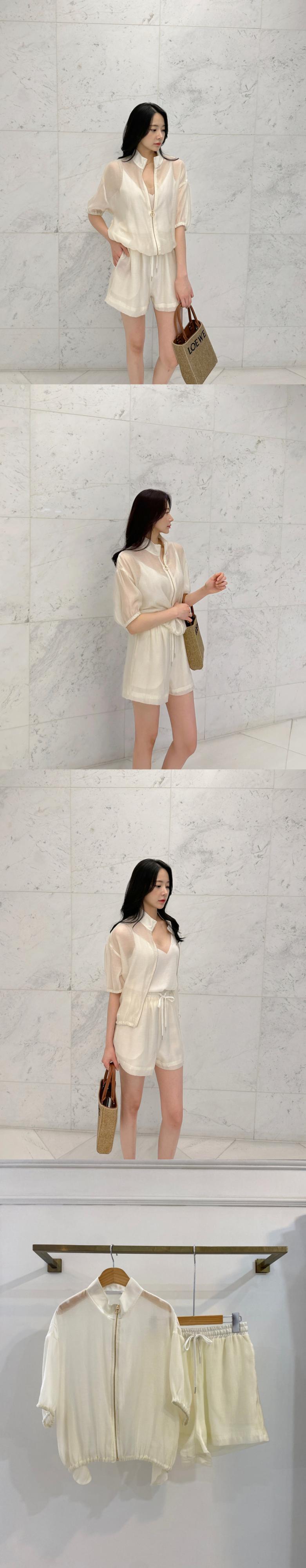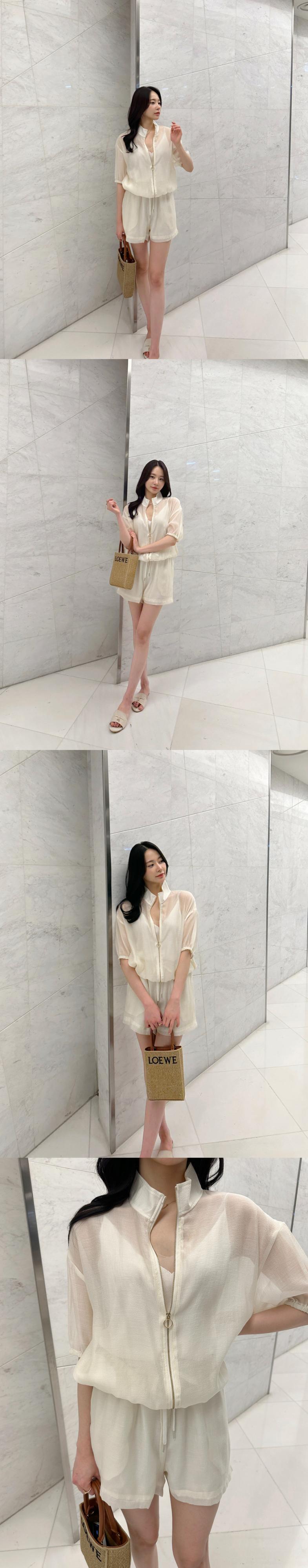 [EWQ] セット優しい薄い視点半袖シャツ + ハイウエストレースアップショーツ夏潮ツーピーススーツ ハイウェスト ショート ハーフスリーブ サマー 夏物 ブルマー