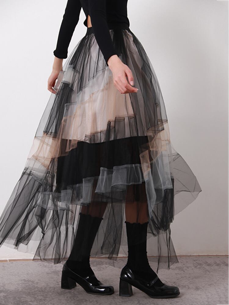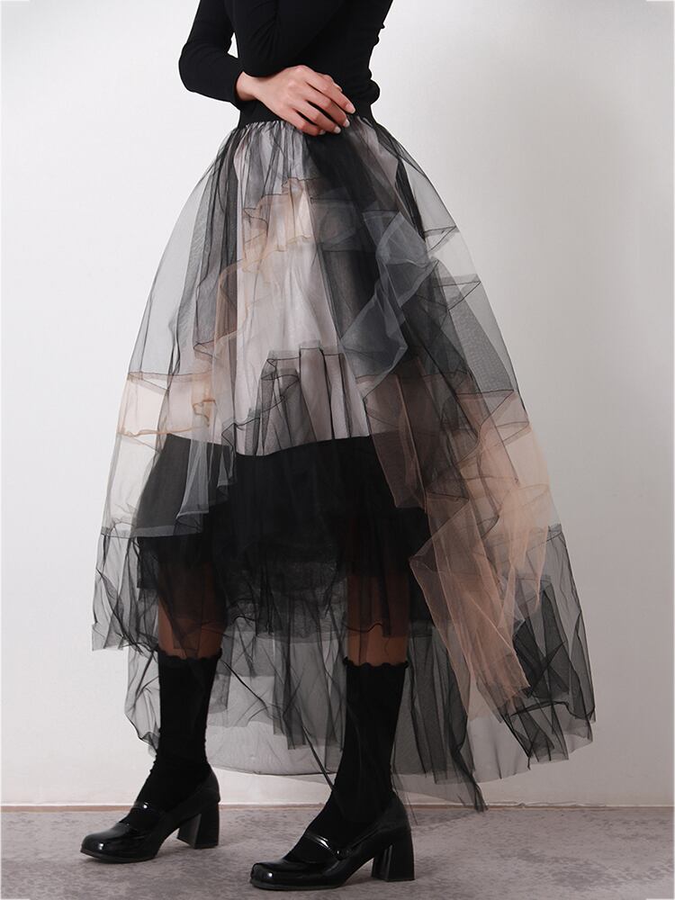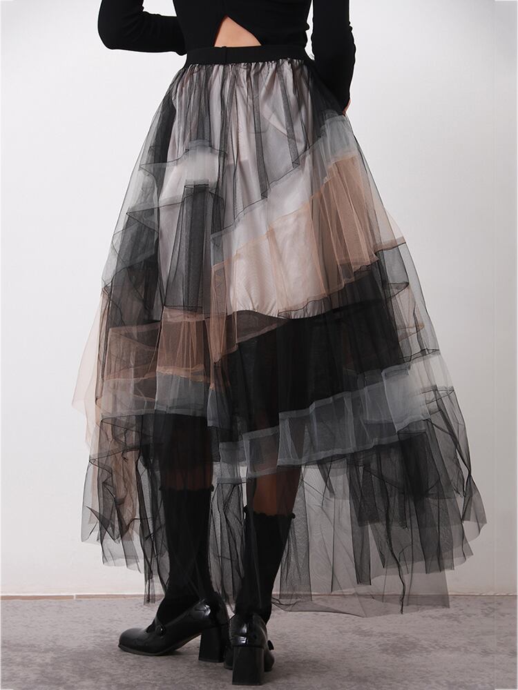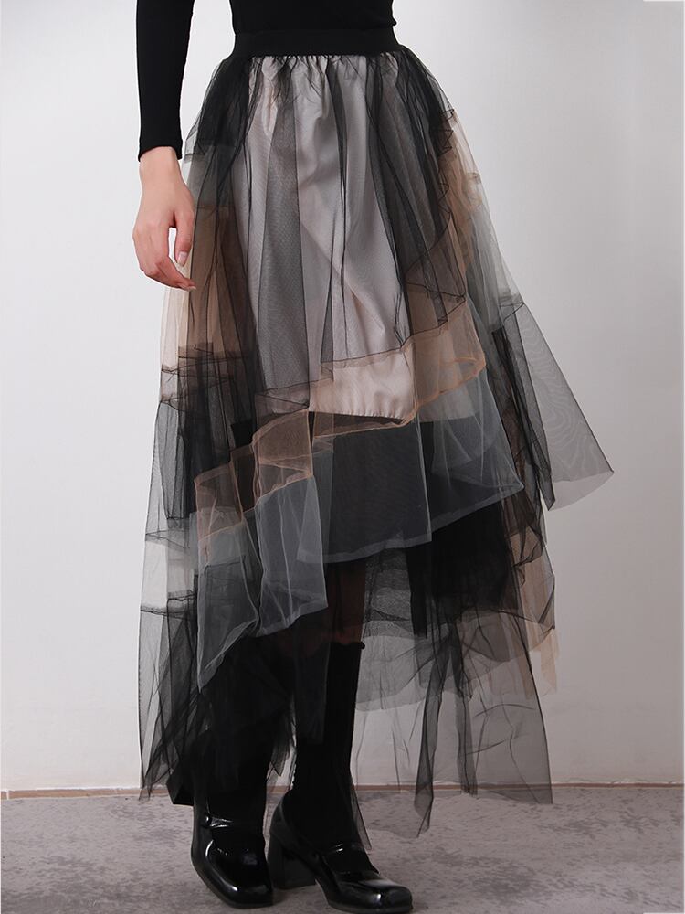 [EWQ] 夏パッチワーク気質対照的色不規則ガーゼふわふわスカートボールガウン潮 サマー 夏物