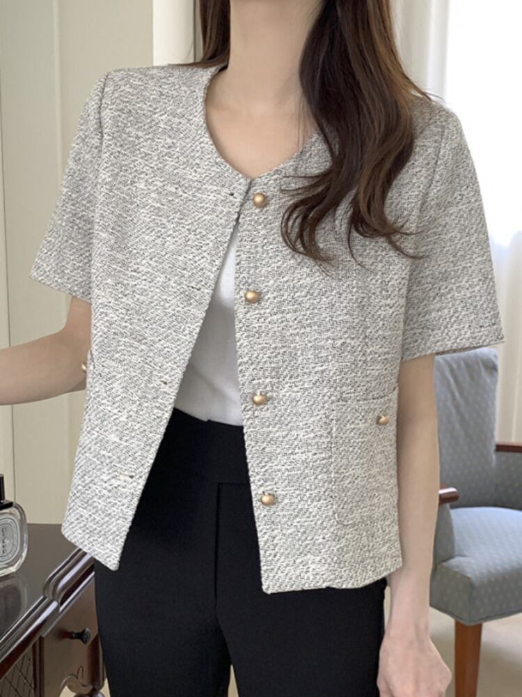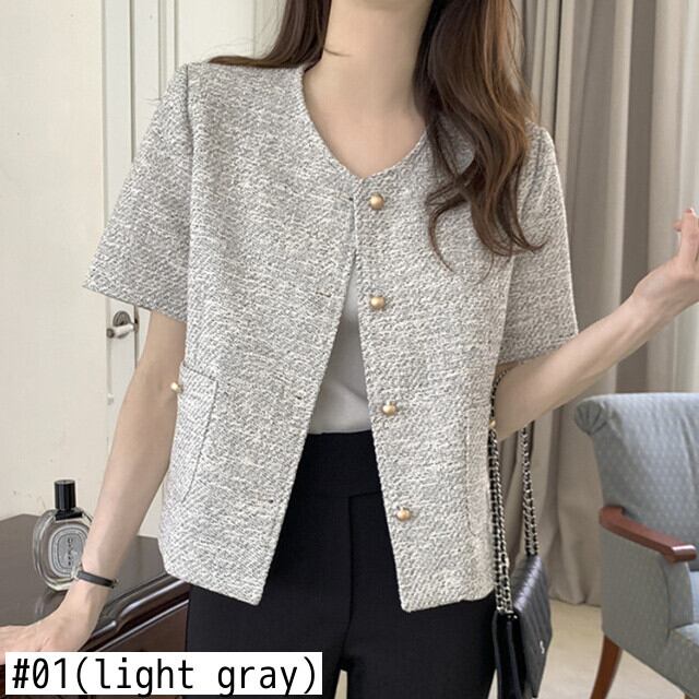 [EWQ] サマーツイード半袖ジャケットシングルブレストミニマリストコート夏潮生き抜く 16U492 ショート ハーフスリーブ 夏物