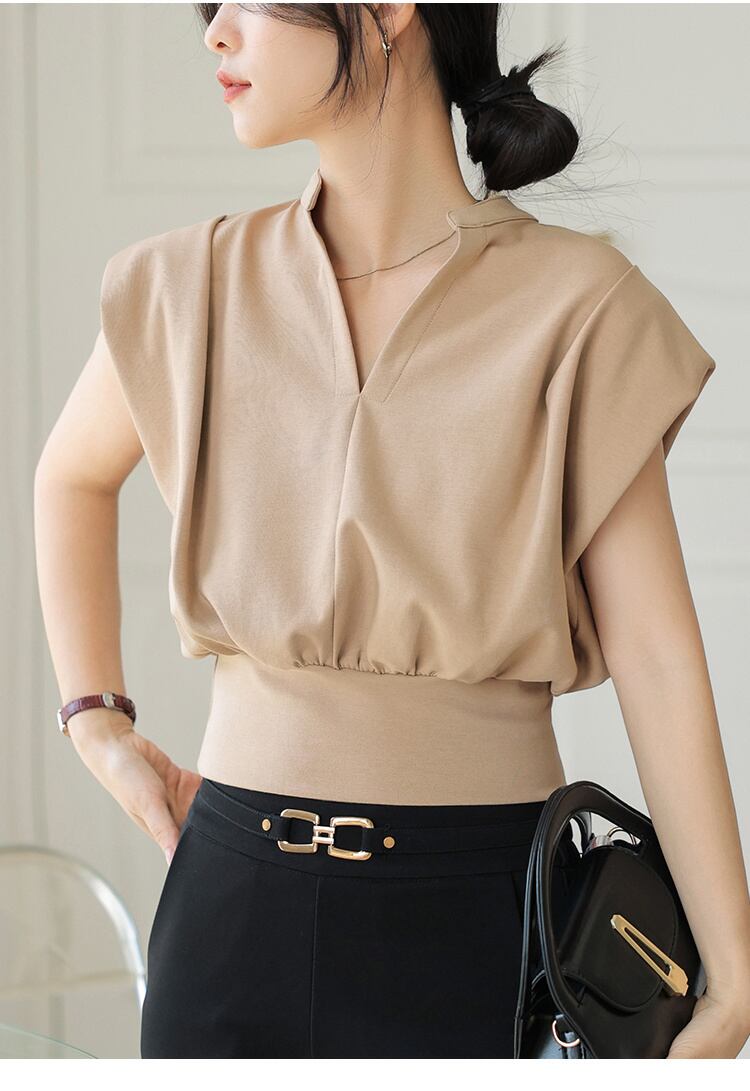 [EWQ] V ネックノースリーブ Tシャツソリッドカラー裾スリムフィット Tシャツトップ夏潮 Tシャツ サマー 夏物 Vネック