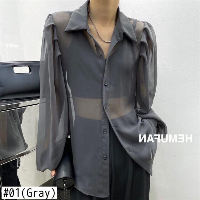 [EWQ] 視点ルーズシャツ長袖薄手シングルブレスト無地ブラウストップ夏潮 ロング サマー 夏物 ソリッドカラー