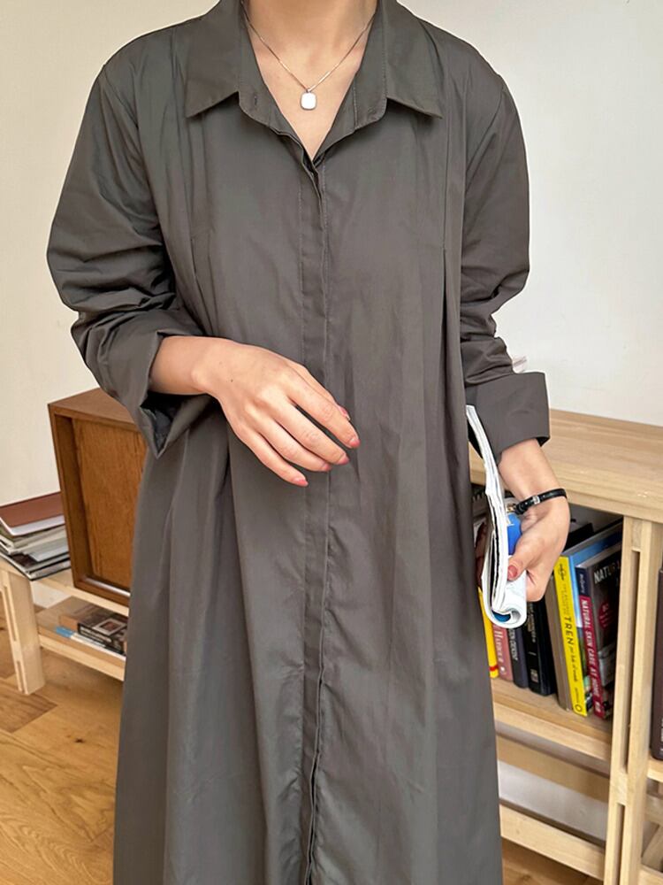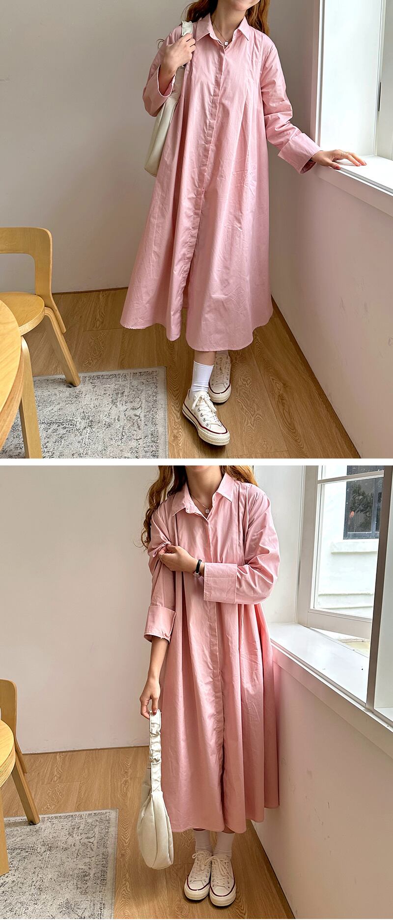[EWQ] ピンクシングルブレスト美しいシャツドレス長袖ルーズカジュアルドレス夏 ロング サマー 夏物