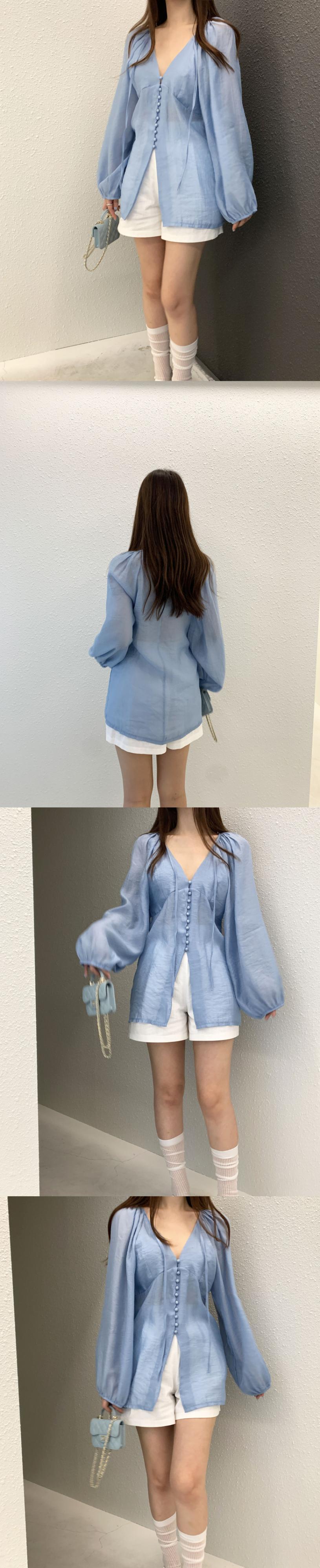 [EWQ] ジェントルレースアップシャツ薄手視点夏 V ネックスプリットシングルブレストタイドトップ 16U427 サマー 夏物 Vネック