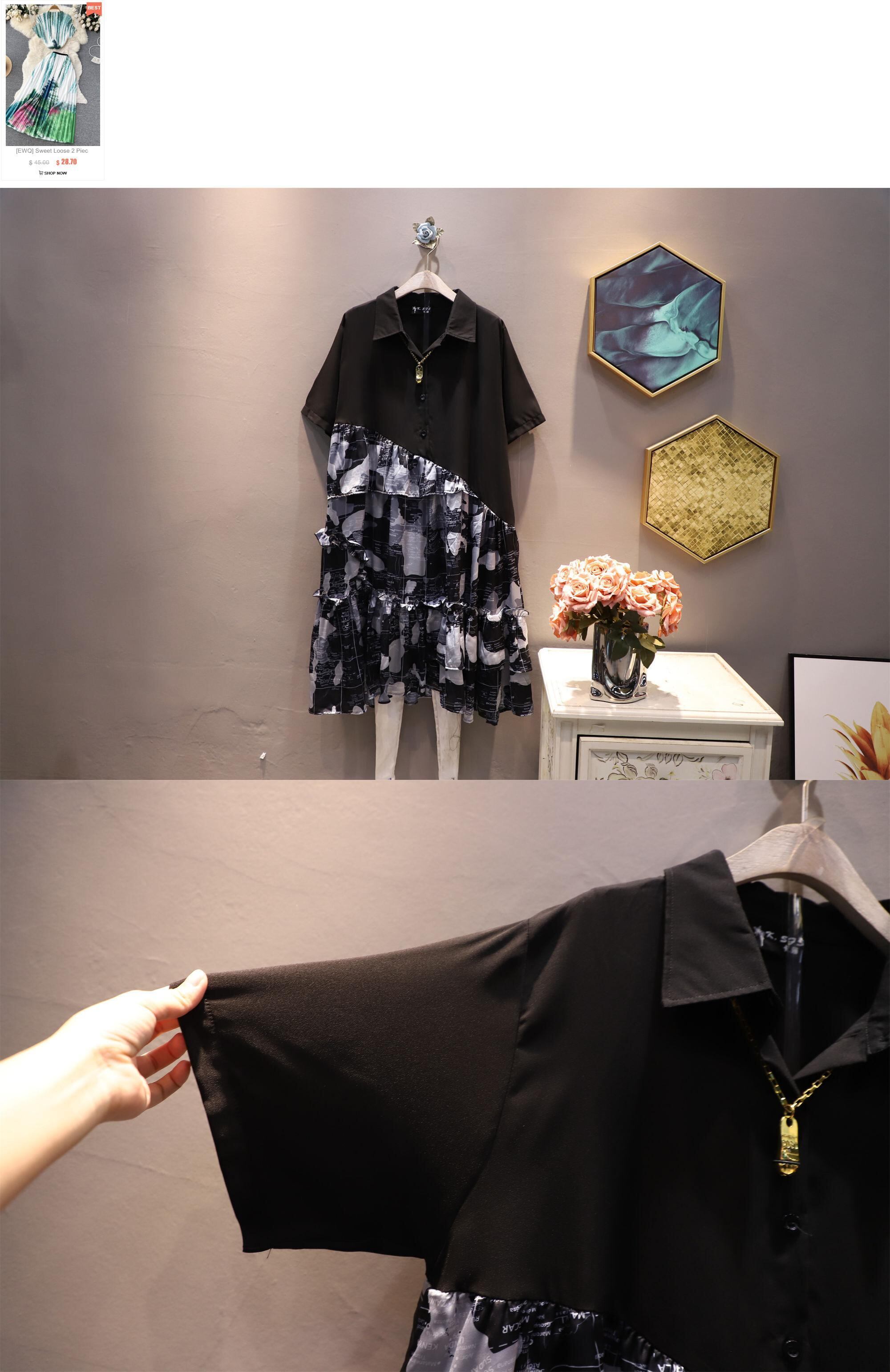 [EWQ] パッチワークレターフリルドレスコントラストルーズビッグサイズジッパードレス夏潮 Vestido サマー 夏物