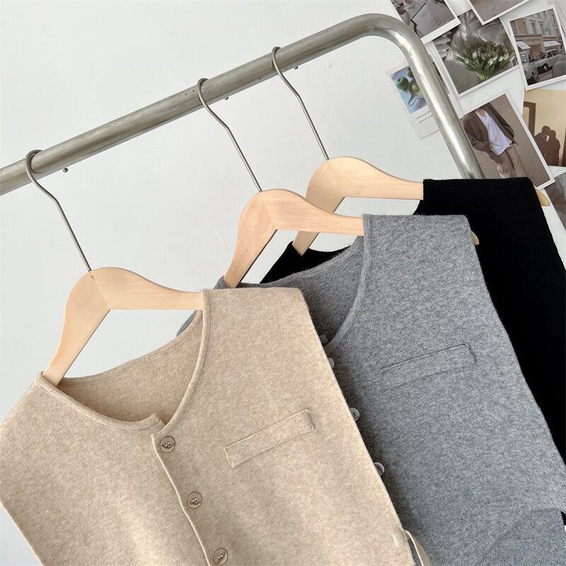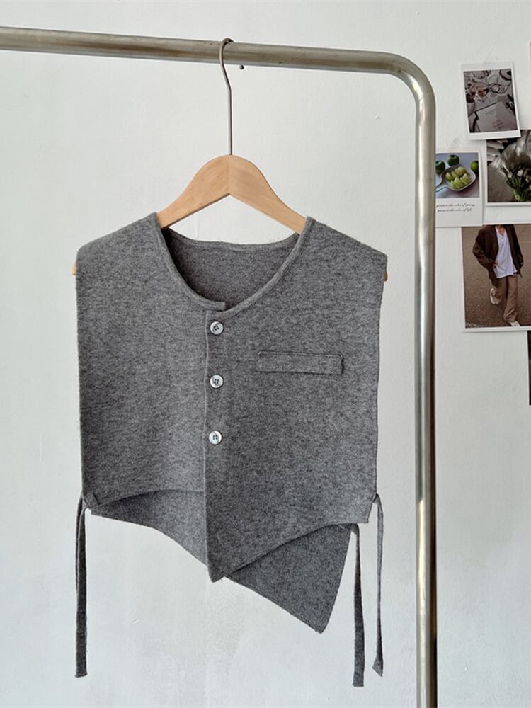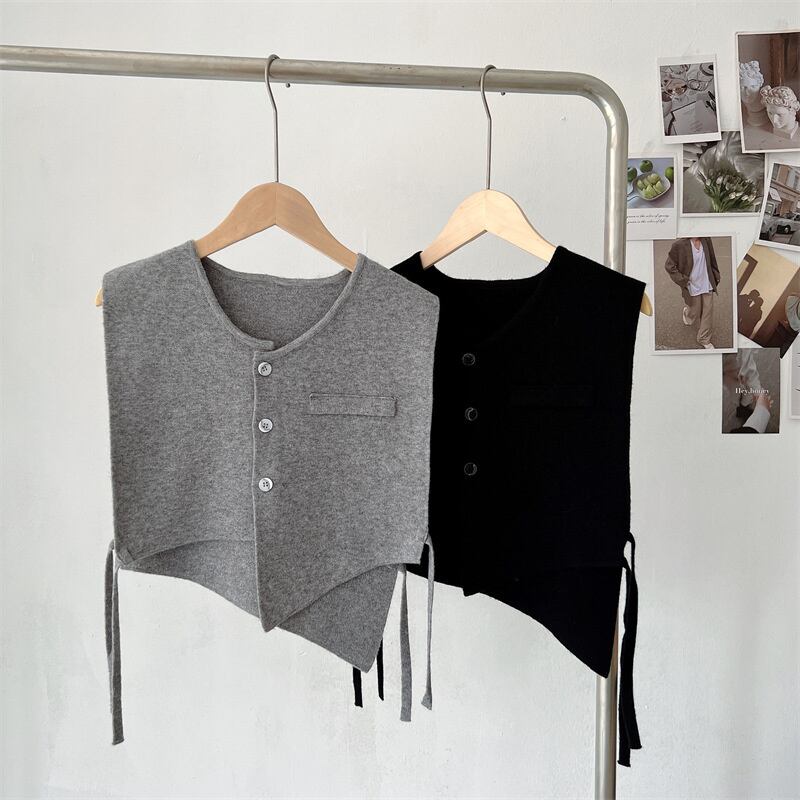[EWQ]変則サイドレースアップニットベスト夏物シングルブレストショートノースリーブジャケットアウタートップス6U566 半袖 ハーフスリーブ サマー