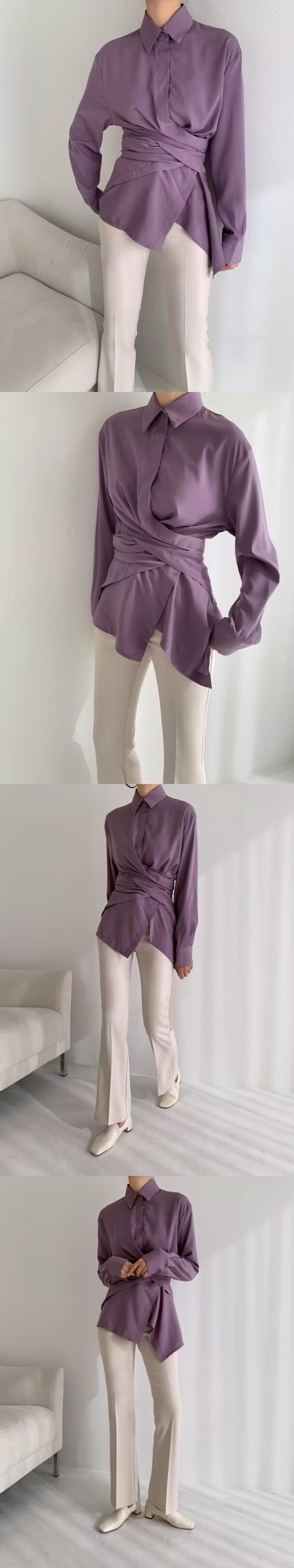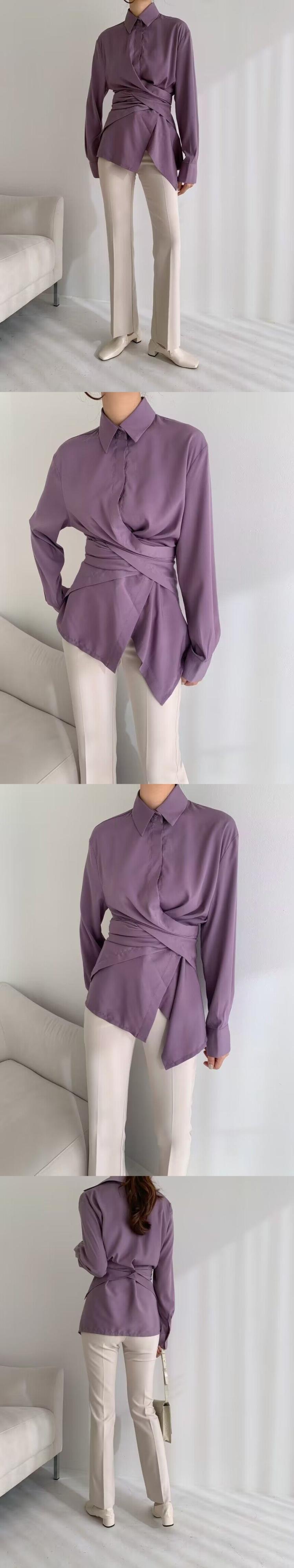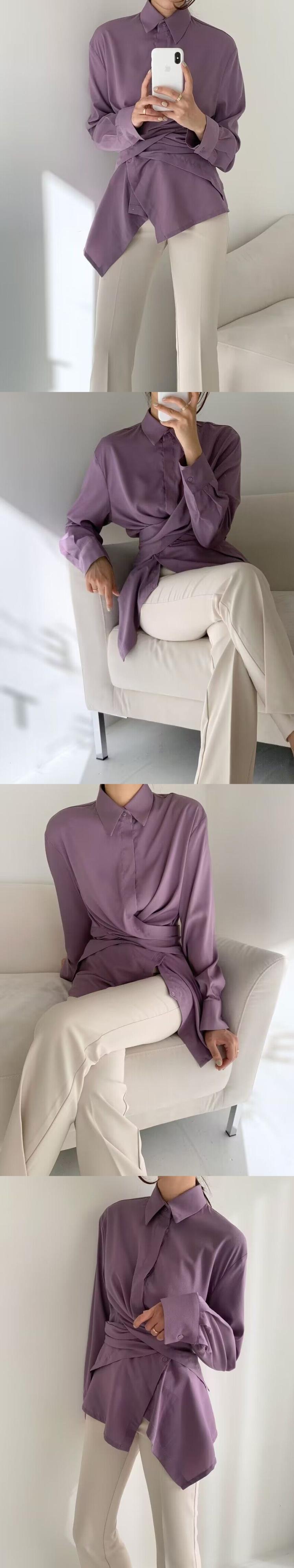 [EWQ] パープルシャツ長袖ルーズフィット不規則クロスシングルブレストトップスサマータイドブラウス ロング 夏物