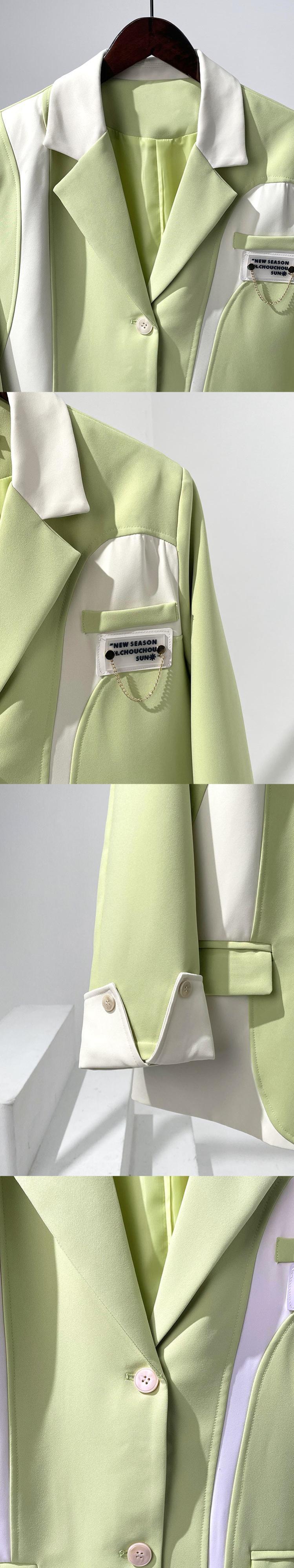 [EWQ] グリーンジャケットノッチ襟長袖パッチワークブレザーコートトップス美しいオフィススーツ秋 Y823 ロング オータム 秋物 会社 学校 通勤や通学にも