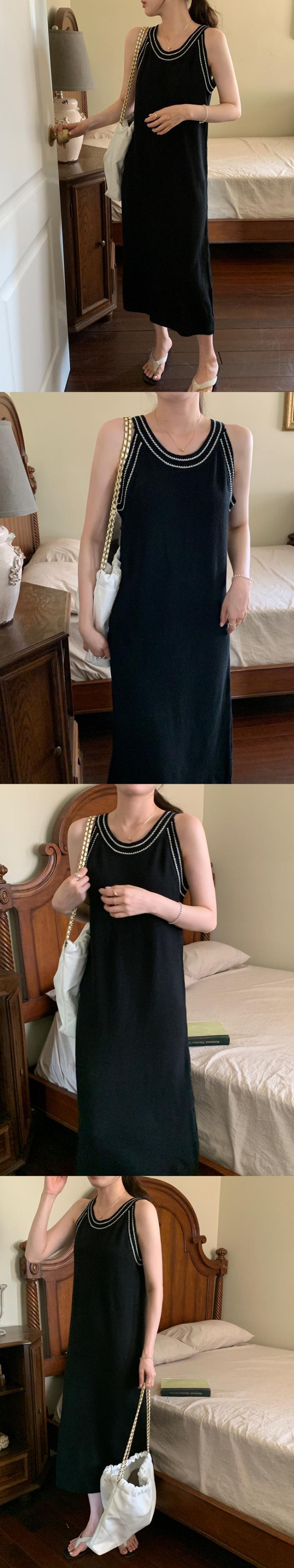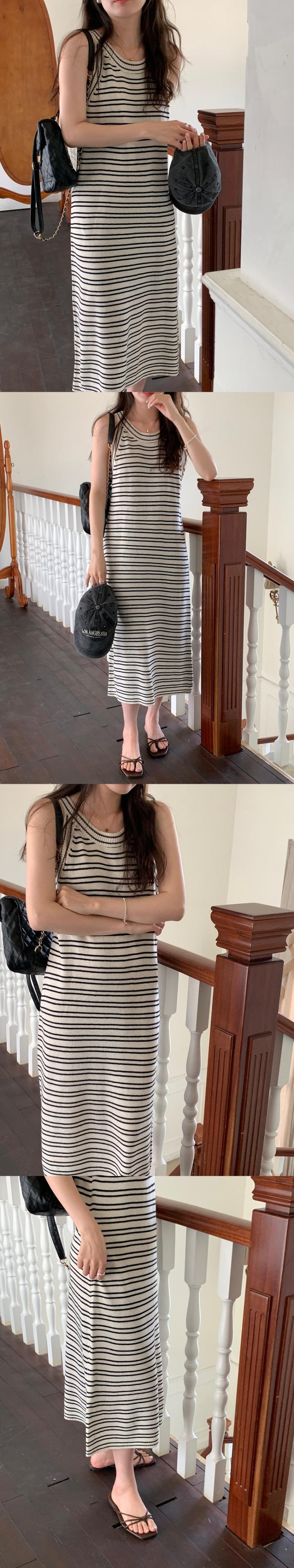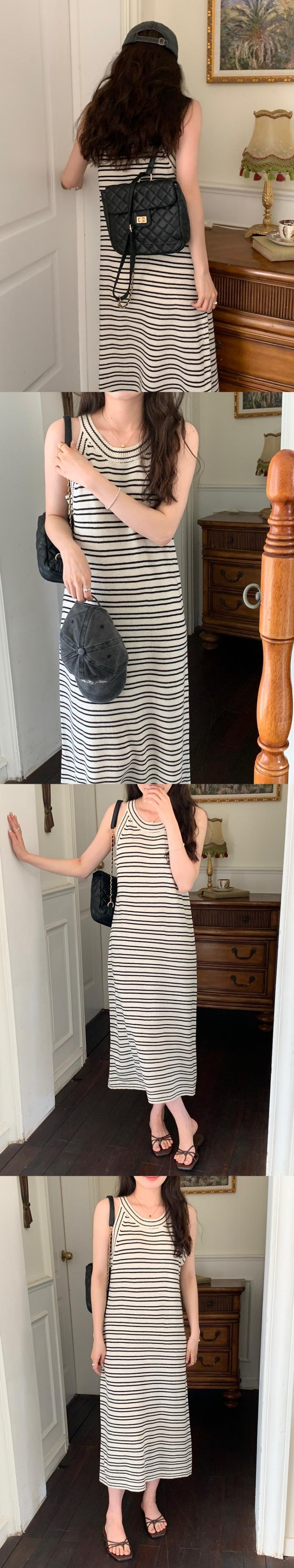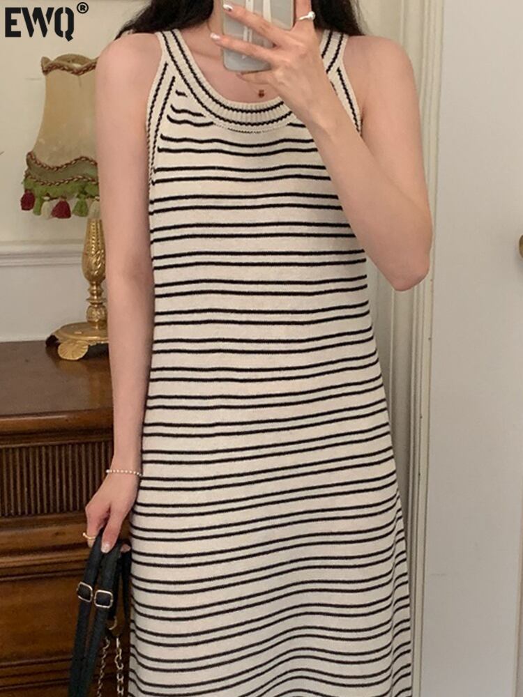 [EWQ] ノースリーブストライプニットドレスコントラストカラーベストニットドレス夏 Vestido 16Y7462 サマー 夏物