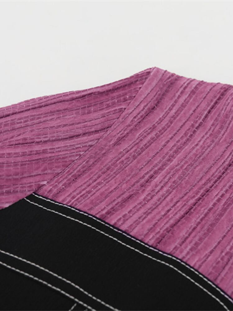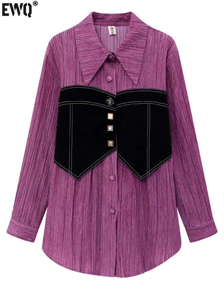 [EWQ] パープルフェイクツーピースシャツ春潮パッチワークシックボタントップコントラストカラー スプリング 春物