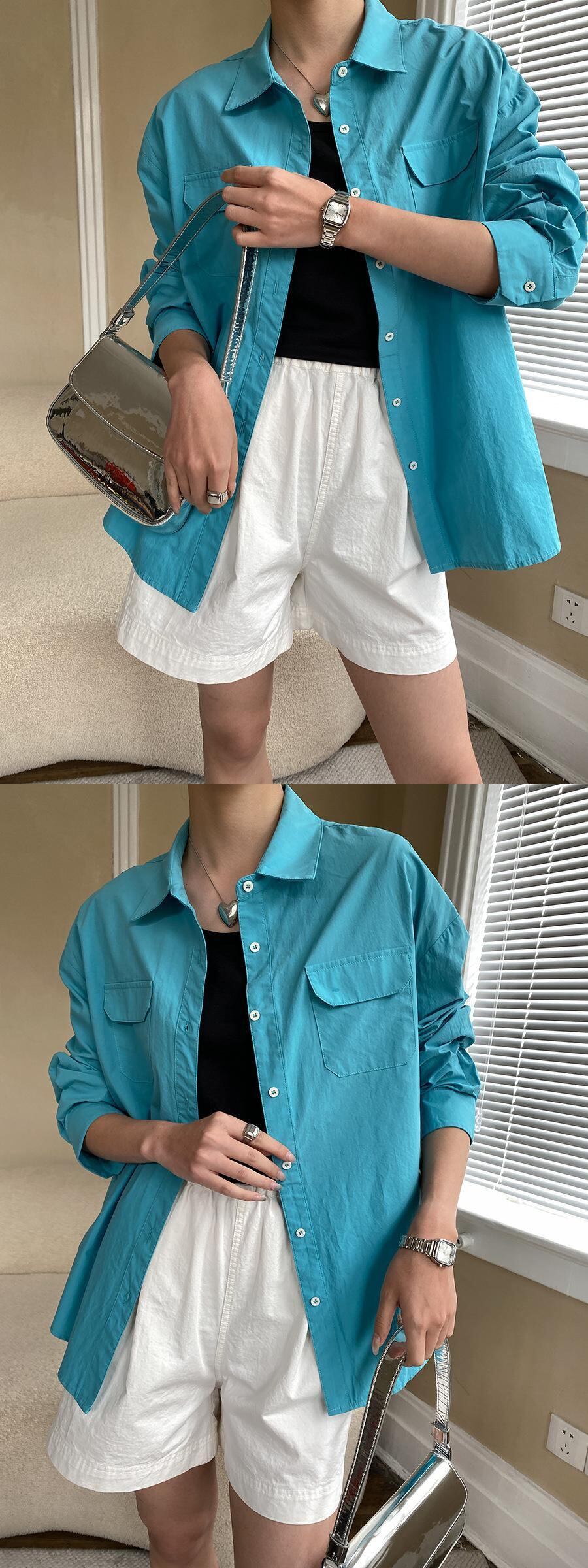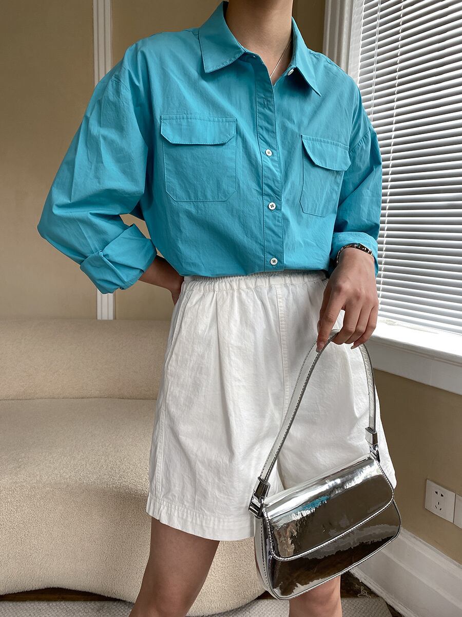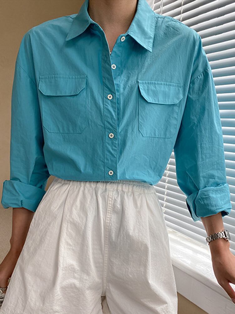 [EWQ] ポケットシャツオフィスレディ長袖ソリッドカラーブラウスシングルブレスト春潮気質トップ ロング スプリング 春物 会社 学校 通勤や通学にも