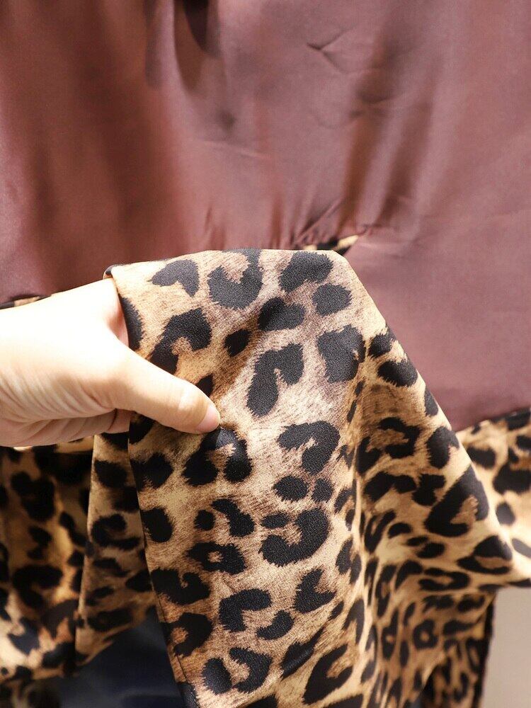 [EWQ] ヒョウ柄スプライス O ネック Tシャツバッティングスリーブパッチワークビッグサイズ Tシャツトップサマー Tシャツ 夏物 Oネック