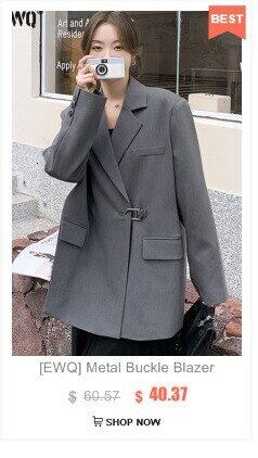 [EWQ] 長袖ステッチカラー非対称ボタンアップシャツパッチワーク長袖トップブラウス服 ロング
