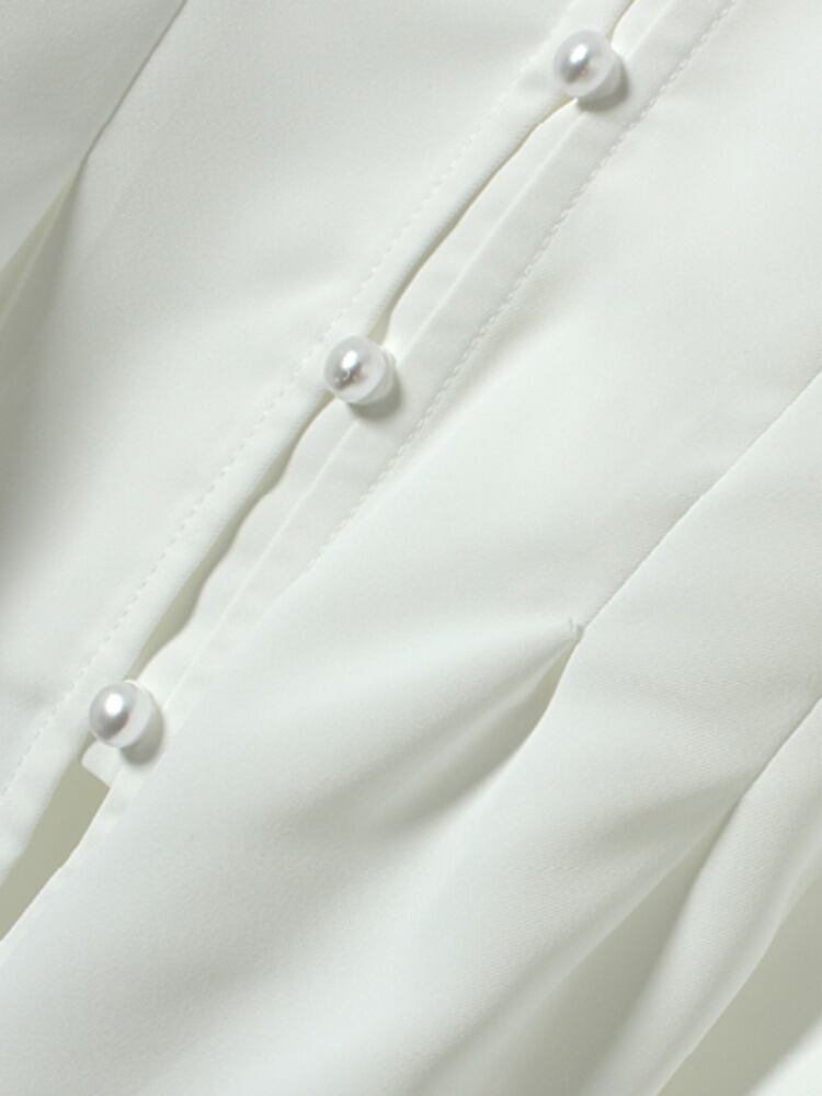 [EWQ] レースパッチワーク V ネックシャツホワイトパールバックル装飾半袖ルーズ夏潮トップ ショート ハーフスリーブ サマー 夏物 Vネック 真珠