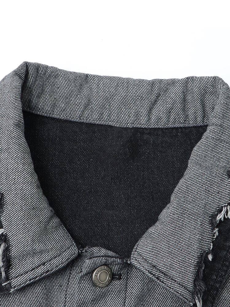[EWQ] ストリートデニムジャケット不規則スプライスコントラスト長袖ジャケットコート秋服夏 ロング サマー 夏物 オータム 秋物