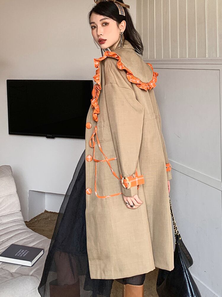[EWQ] フェイクツーピースフリルウインドブレーカーコート長袖パッチワークトレンチジャケット夏生き抜く ロング サマー 夏物
