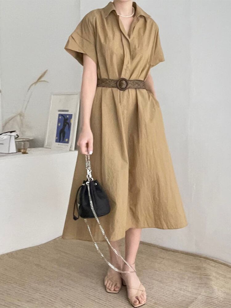[EWQ] シャツドレスベルト付きシングルブレストルーズカジュアル半袖ドレス夏潮 Vestido 16Y9630 ショート ハーフスリーブ サマー 夏物 ハーネス