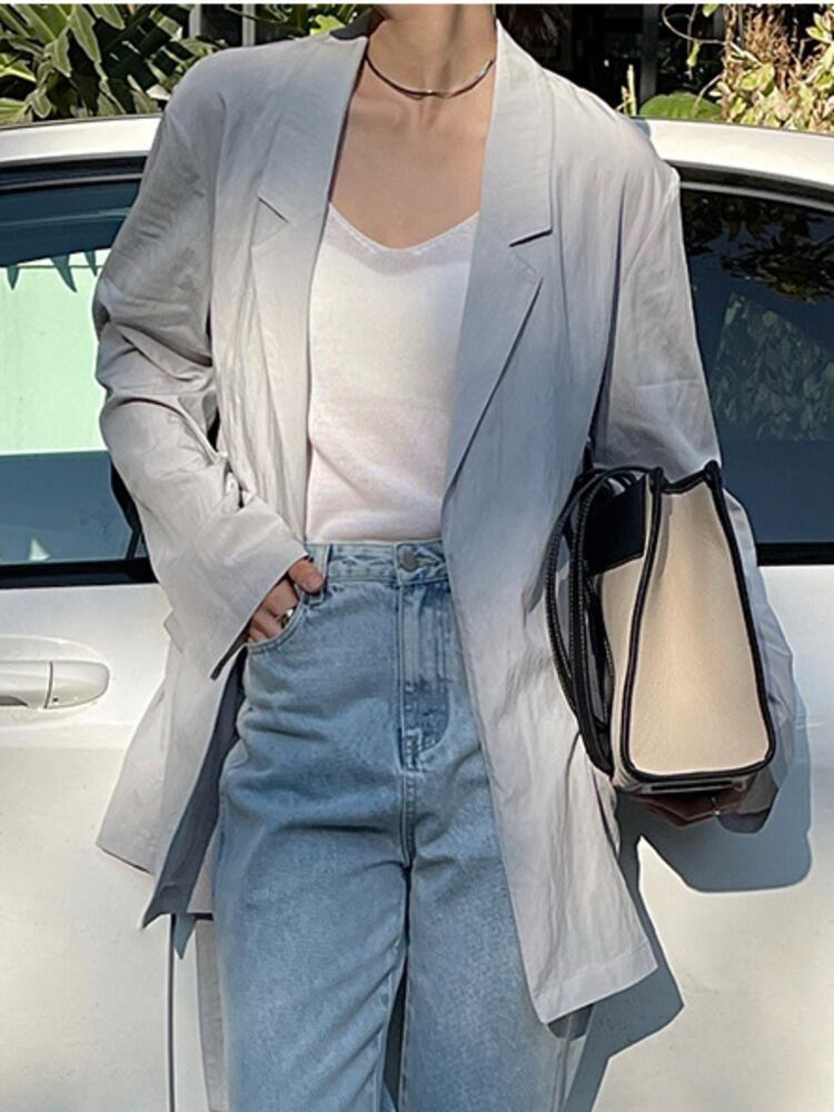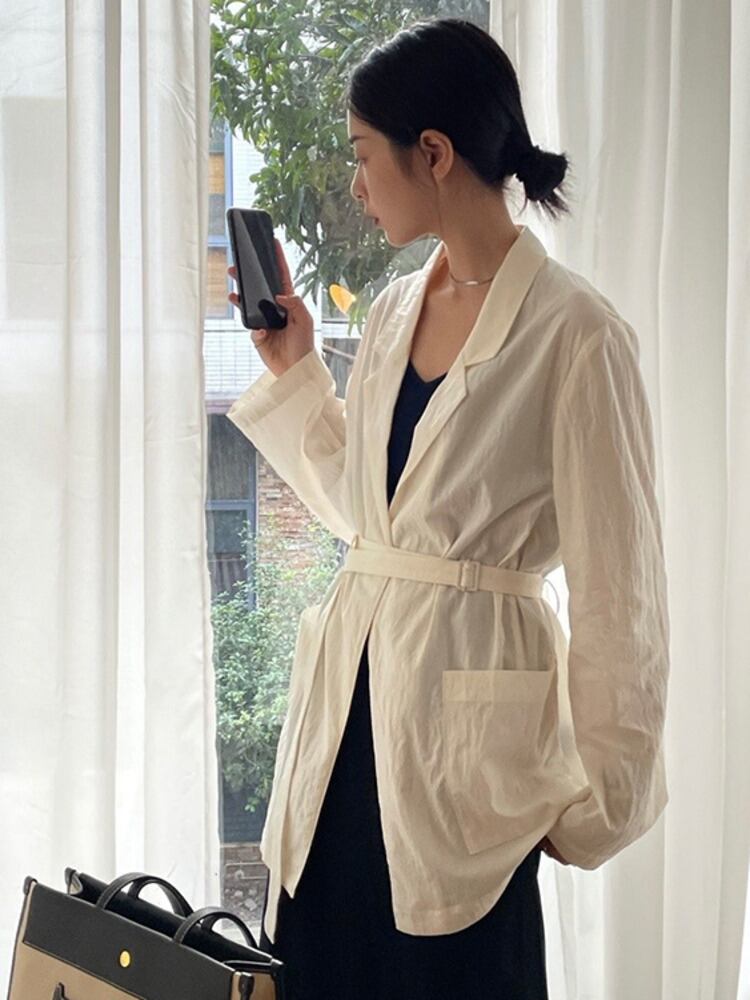 [EWQ] 薄い夏ブレザーコートルーズフィットノッチレースアップスーツジャケットネクタイ服 16U175 サマー 夏物