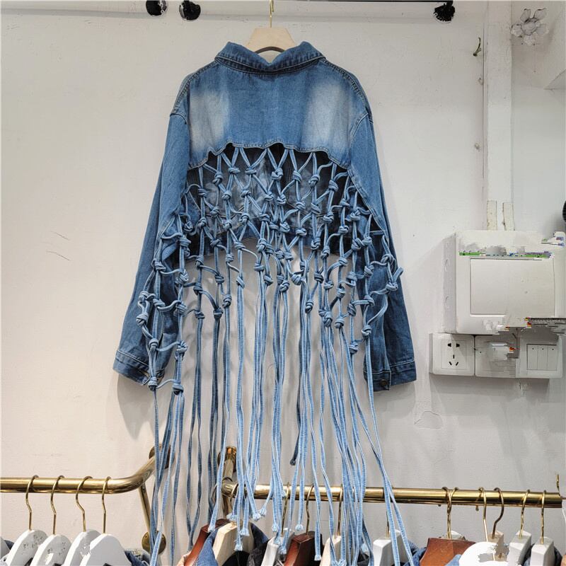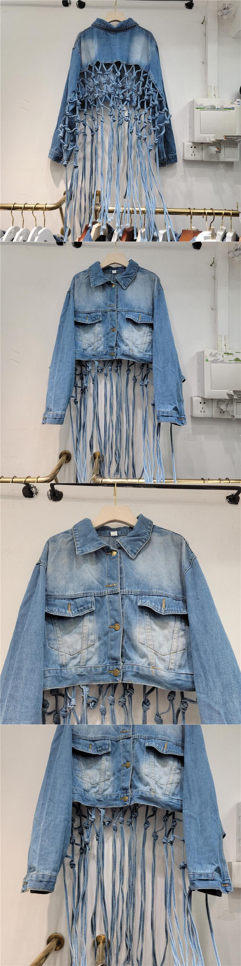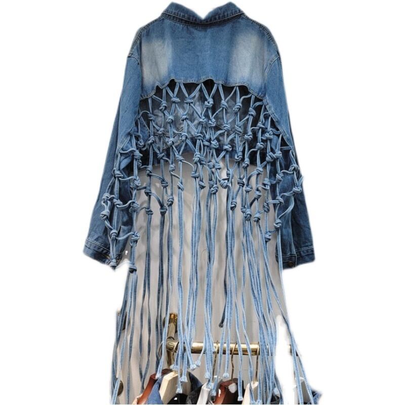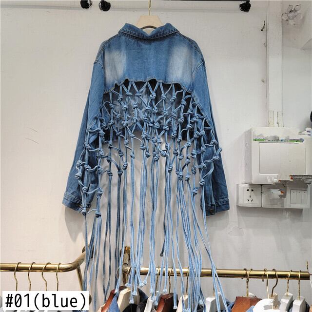 [EWQ] 織物中空アウトバックテルデニムジャケットストリート長袖ブルーコート春秋潮 ロング スプリング 春物 オータム 秋物