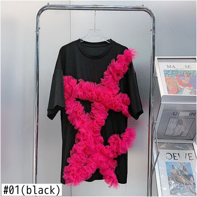 [EWQ] メッシュパッチワーク Tシャツガーゼコントラストカラールーズ半袖 Tシャツ夏潮 Tシャツ 16U729 ショート ハーフスリーブ サマー 夏物
