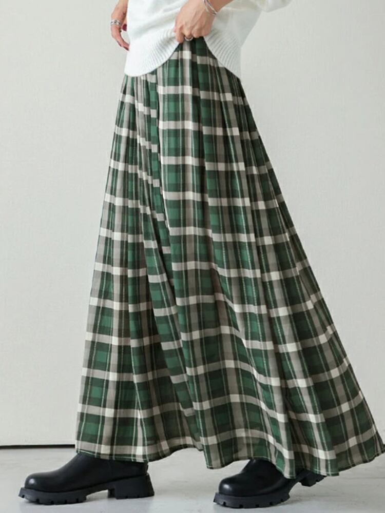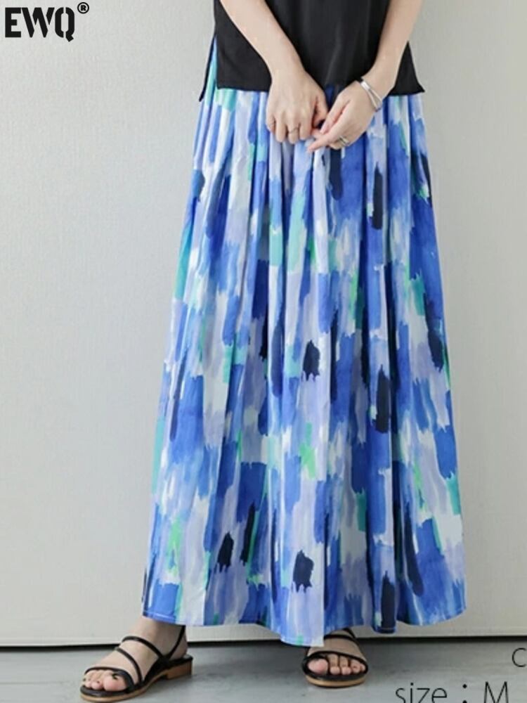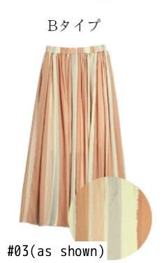 [EWQ] ストライプ ルーズ ロング 5分丈 スカート レディース Aライン ウエスト折り ファルダス 夏トレンド 16U695 サマー 夏物