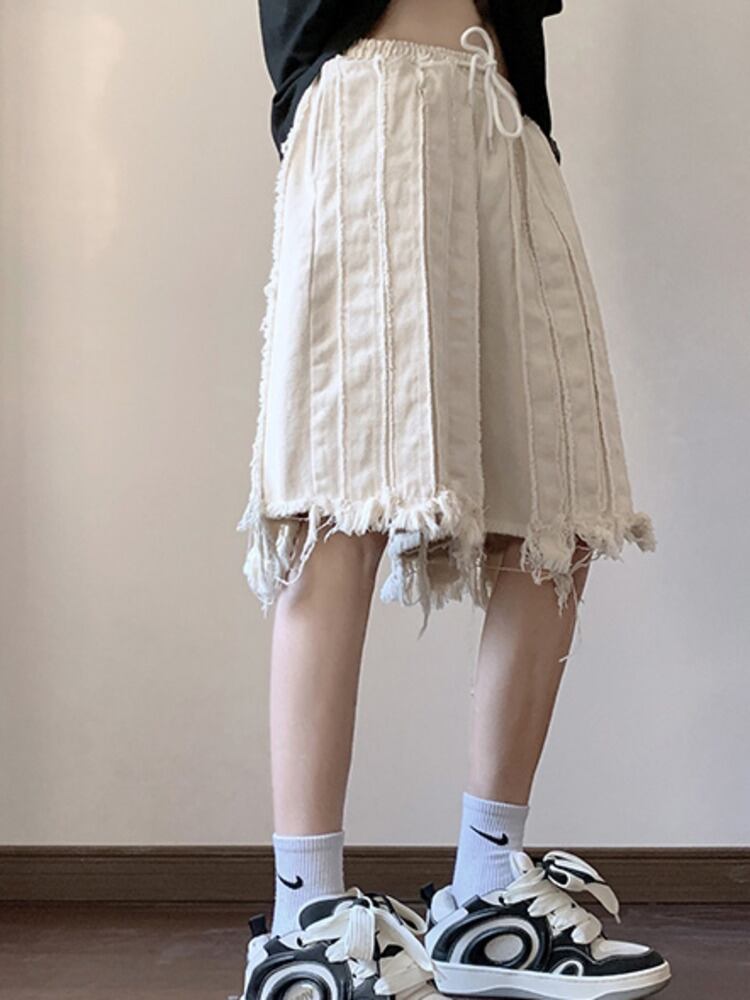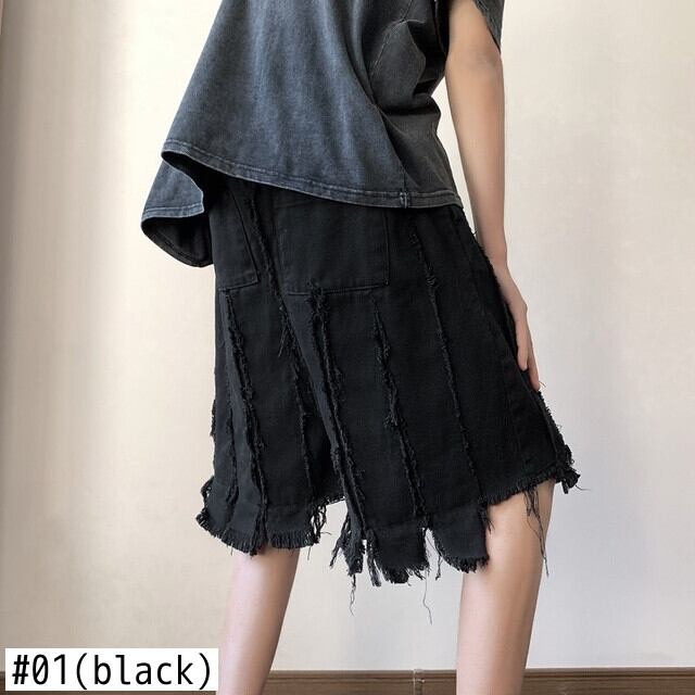 [EWQ 不規則バリ デニム ショートパンツ ウエスト巾着 パッチワーク ストリート ポケット ショート ジーンズ 夏 16U731 サマー 夏物 ショーツ ブルマー
