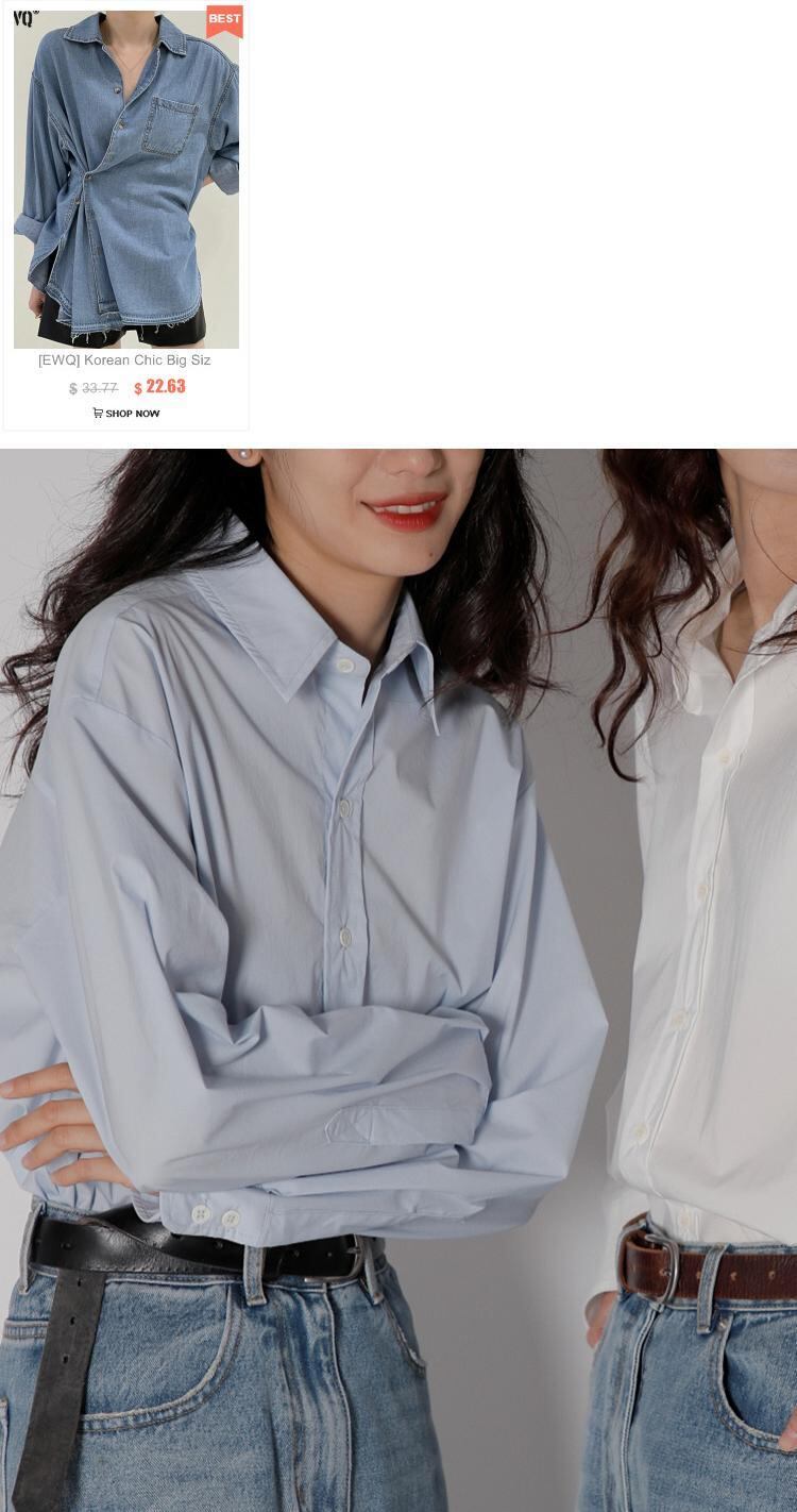 [EWQ] ブルー長袖シャツシングルブレストルーズラペル秋潮トップ 16U833 ロング オータム 秋物