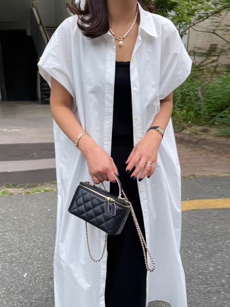 [EWQ] ルーズシャツドレスシングルブレストネイビー半袖ドレス夏潮 Vestidos 16U823 ショート ハーフスリーブ サマー 夏物