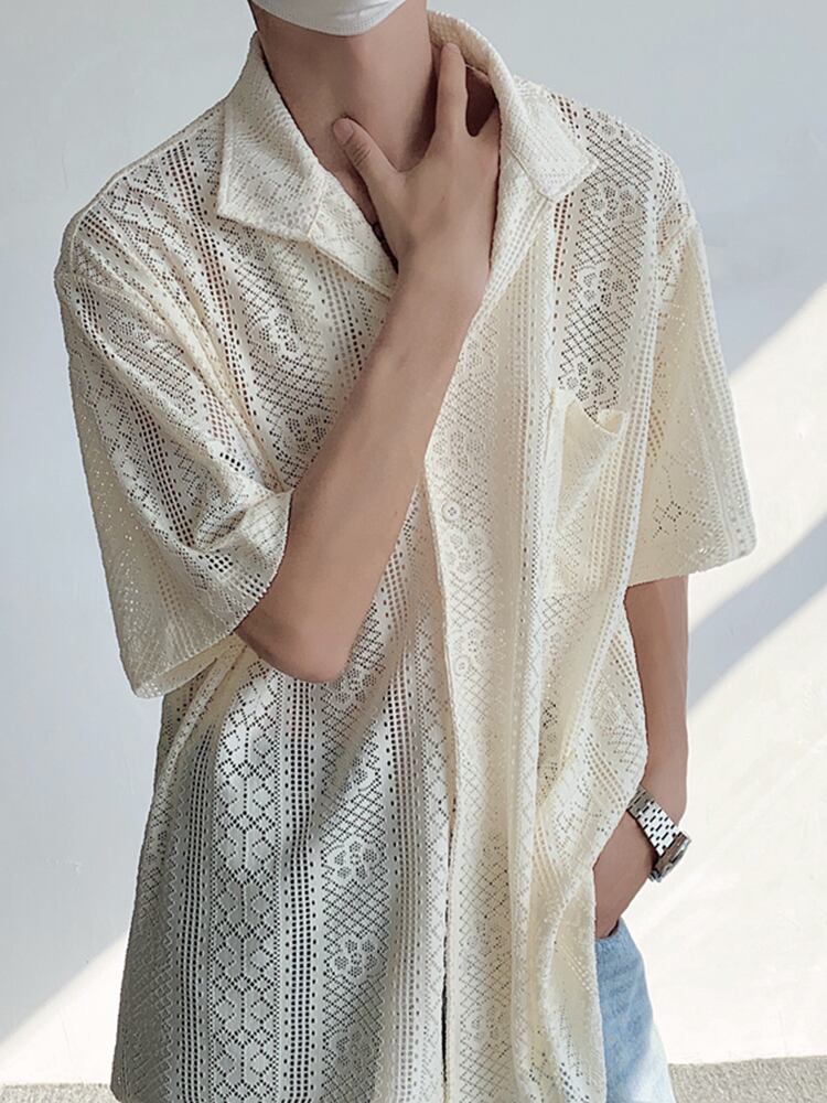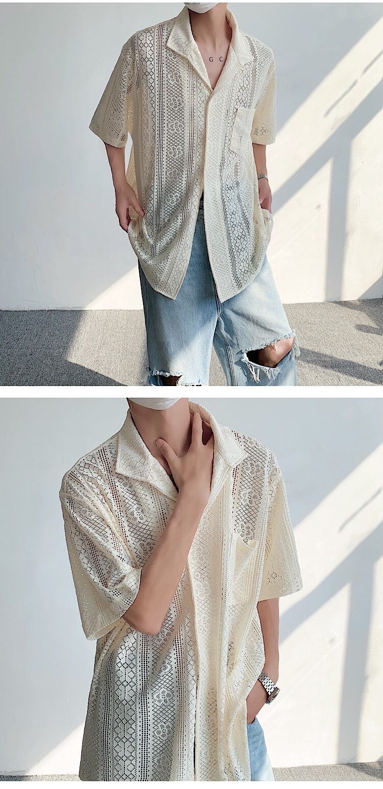 [EWQ] フックフラワー中空シャツ レディース 大きいサイズ 半袖 シングルブレスト 夏 トップス ショート ハーフスリーブ サマー 夏物 フラワーデザイン