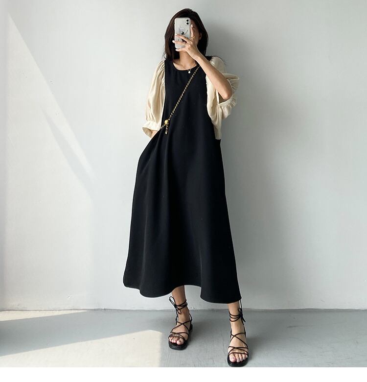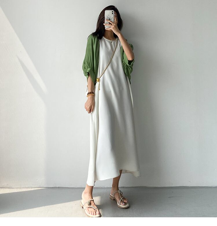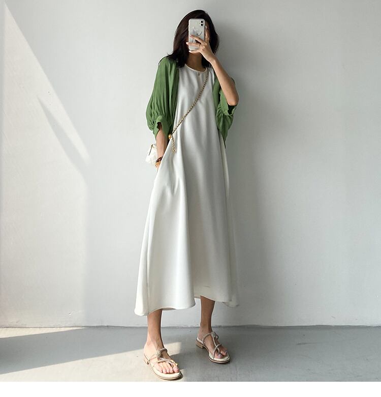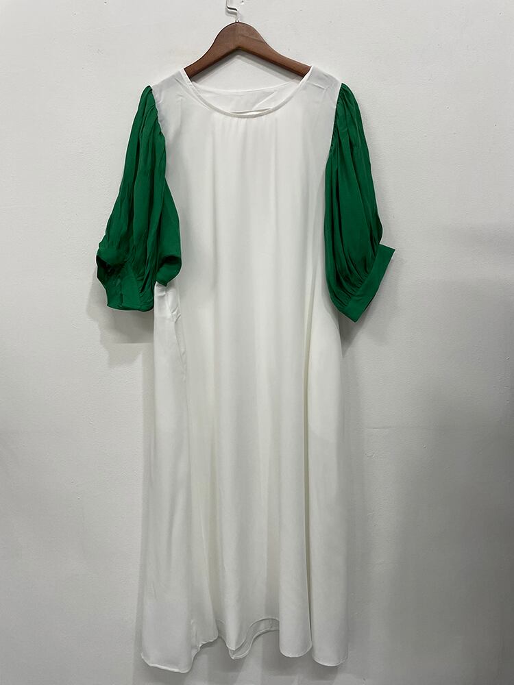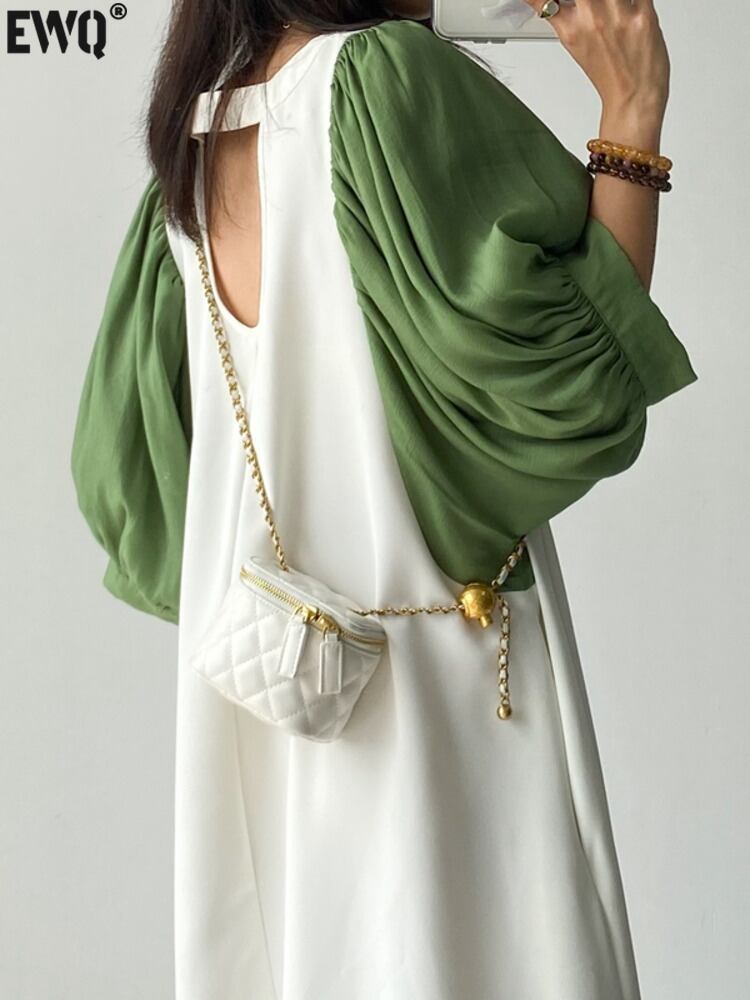 [EWQ] グリーン半袖ドレスビッグサイズパッチワーク特大バック中空アウトドレス夏 Vestido ショート ハーフスリーブ サマー 夏物