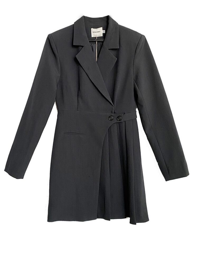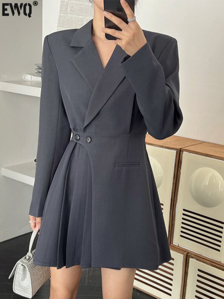 [EWQ] ダブルブレストスーツドレス気質長袖プリーツパッチワークショートドレス夏潮 Vestido U822 ロング サマー 夏物