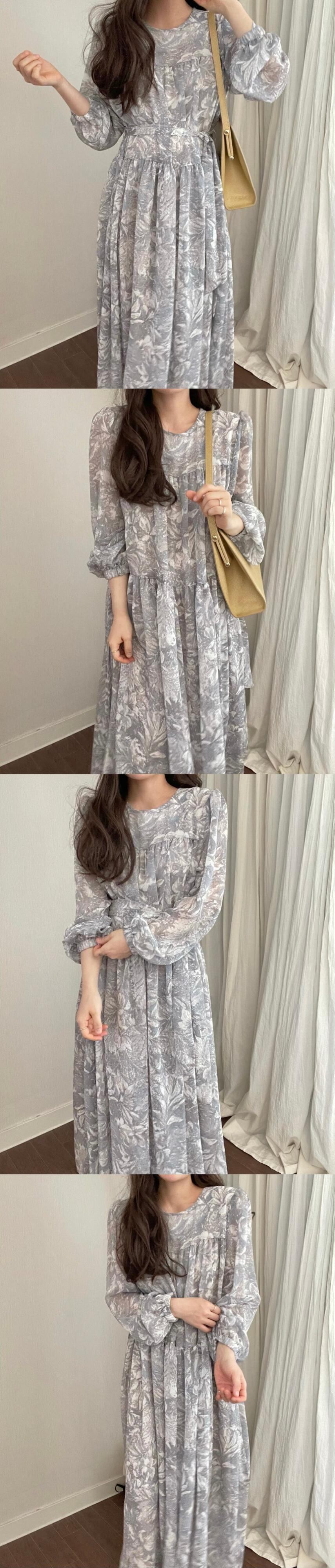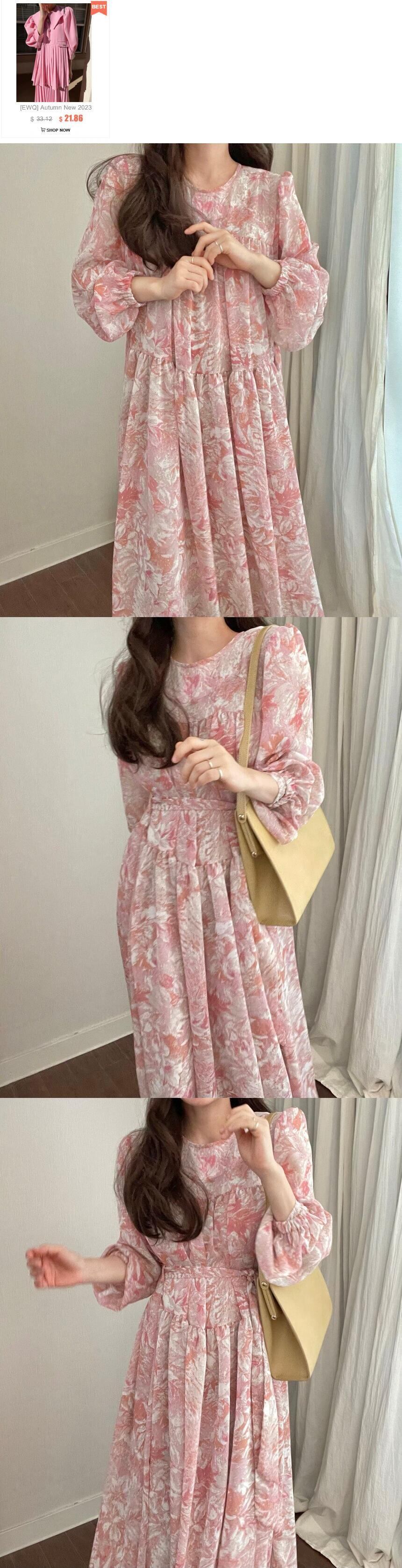 [EWQ] 花コントラストレースアップドレスフラワーパフスリーブプリーツマキシドレス春夏 Vestido 16Y6804 スプリング 春物 サマー 夏物 花柄 フラワーデザイン