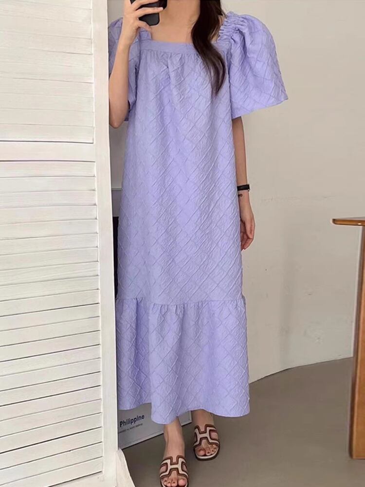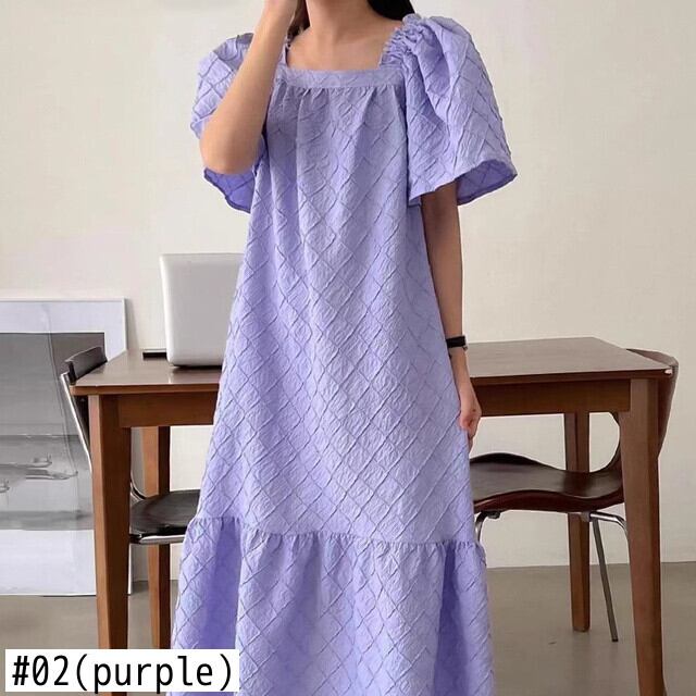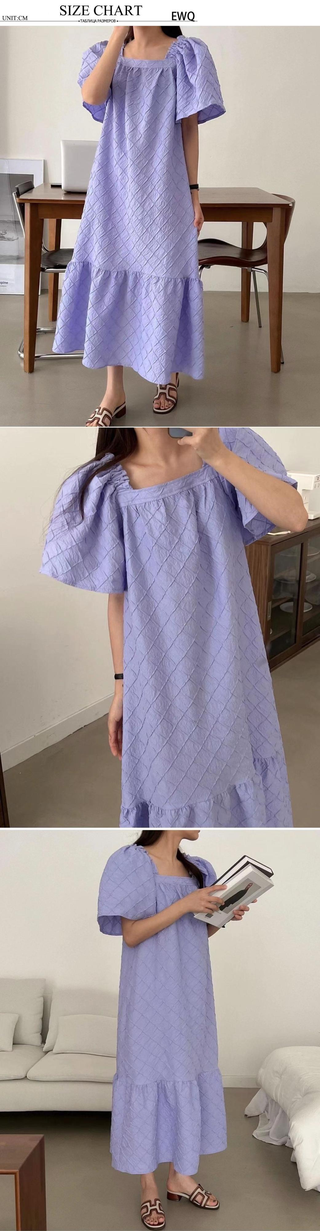 [EWQ] ジャカードパープルドレス夏潮フリルプリーツパッチワークドレス美しいパープル Vestido サマー 夏物
