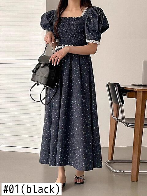 [EWQ] プリントパッチワークレースドレス美しいルーズスクエアカラースリーブ Vestidos 夏 16U739 サマー 夏物 スクウェア
