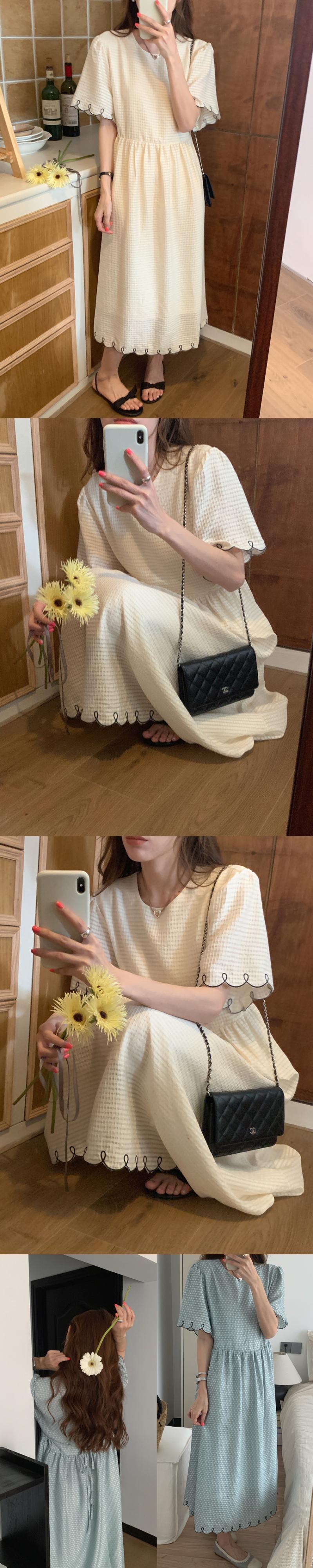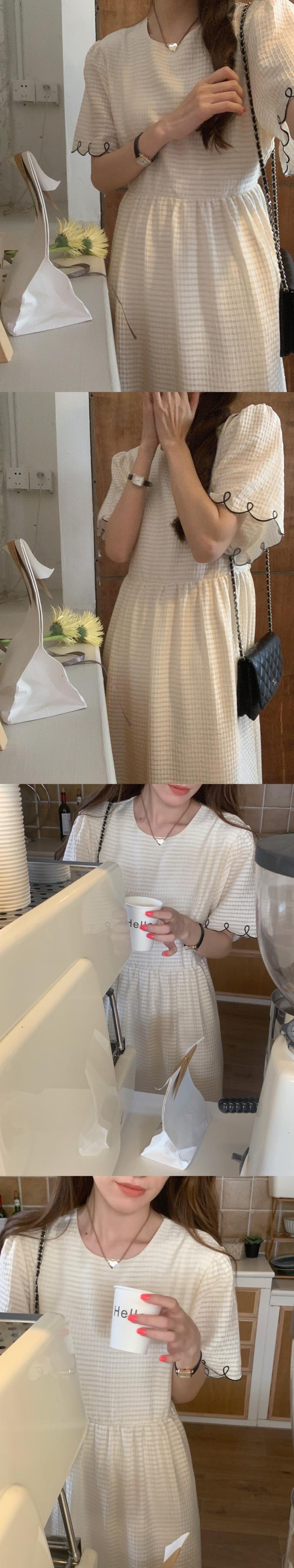 [EWQ] ラインコントラストドレス O ネックプリーツウエスト半袖ドレス夏潮気質ローブ ショート ハーフスリーブ サマー 夏物 Oネック