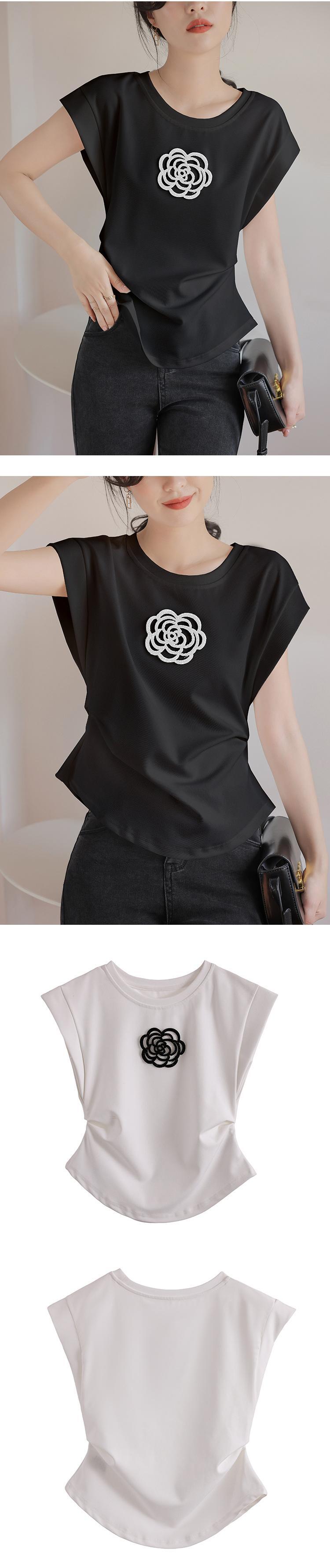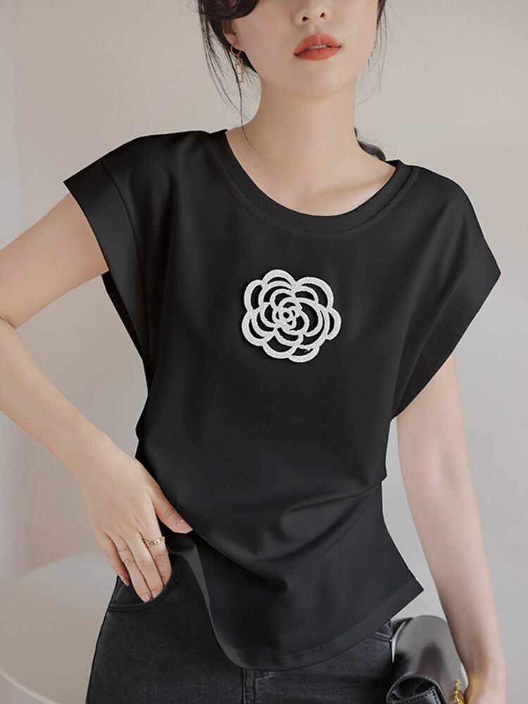 [EWQ] フライングスリーブコントラストカラー Tシャツルーズ O ネックプリント Tシャツトップ夏潮 Tシャツ 467 サマー 夏物 Oネック