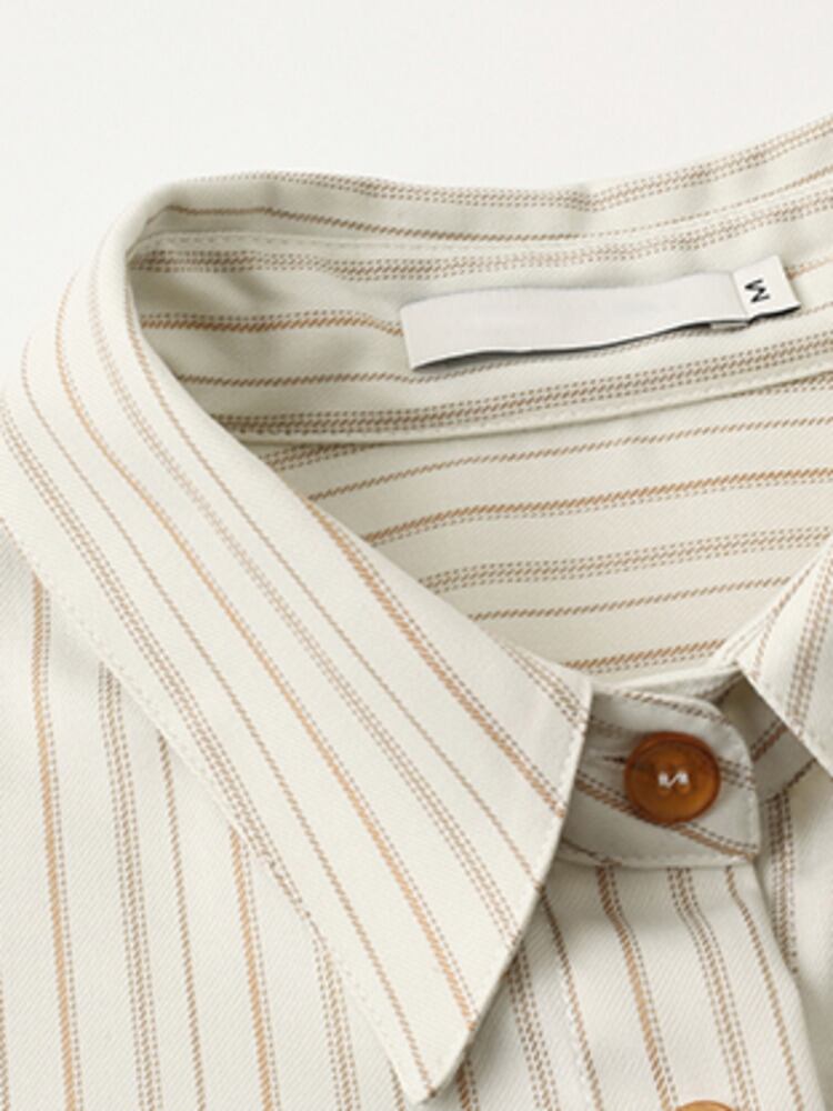 [EWQ] ストライプ シャツ レディース シングルブレスト ゆったり 長袖 秋 薄手 服 16U855 ロング オータム 秋物