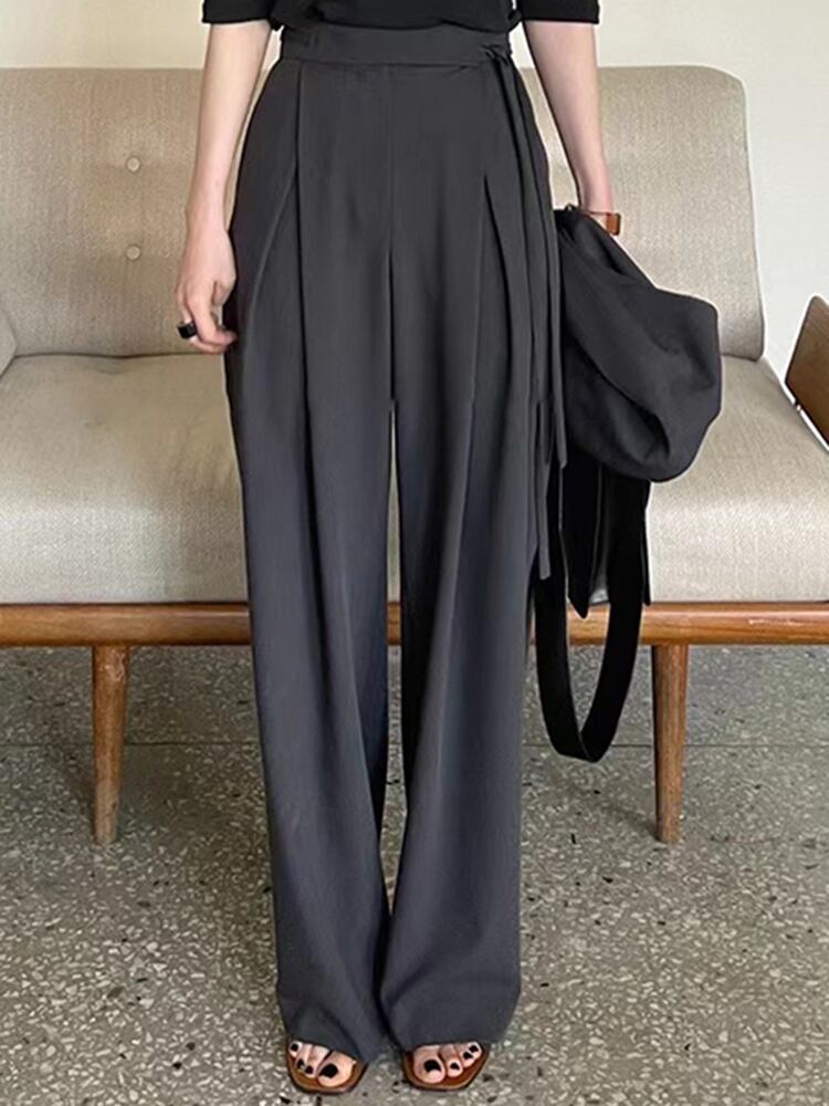 [EWQ] ルーズプリーツパンツウエストアプリコットレースアップワイドレッグパンツ秋オールマッチ 16U850 オータム 秋物 ワイドパンツ