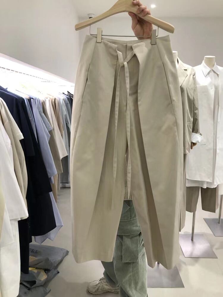[EWQ] ワイドレッグパンツプリーツルーズソリッドカラー気質レースアップパンツ秋潮服 45 オータム 秋物 ワイドパンツ