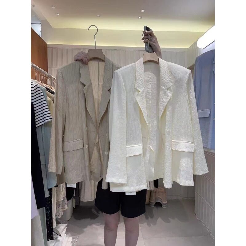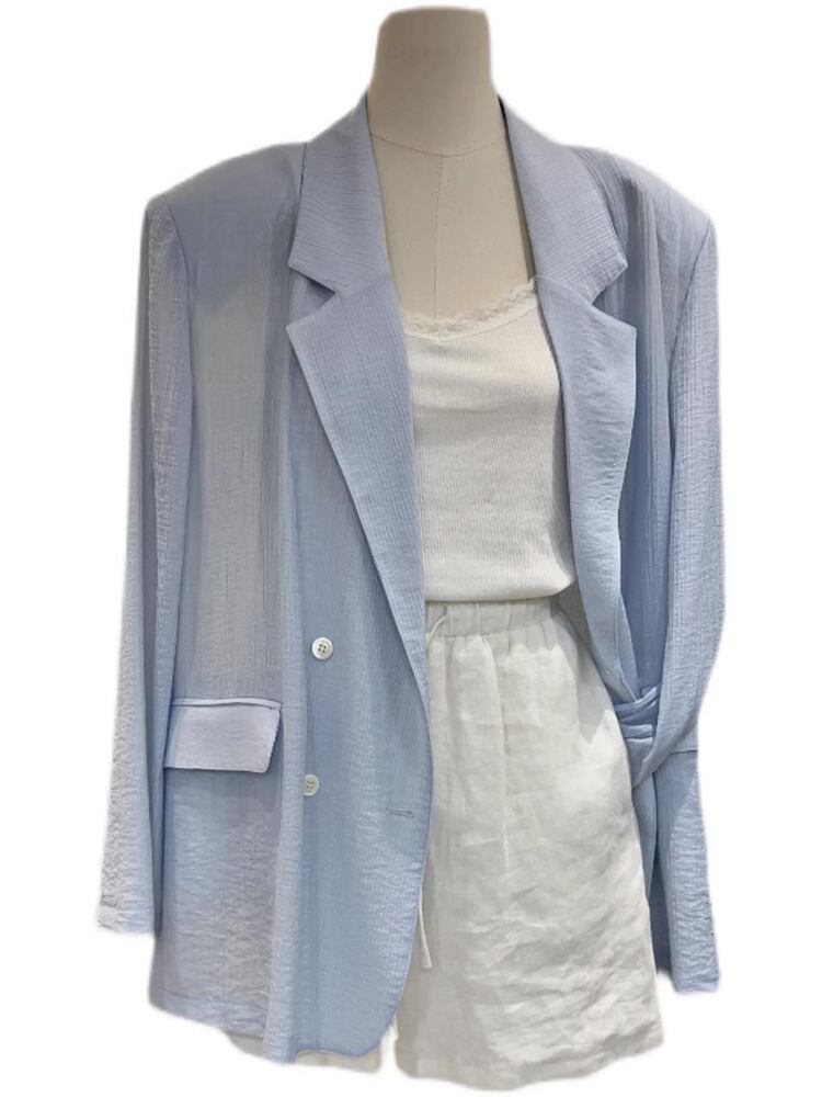 [EWQ] リネンコットン薄手ブレザールーズシングルブレストスーツジャケット長袖ポケットサマートップ ロング 夏物