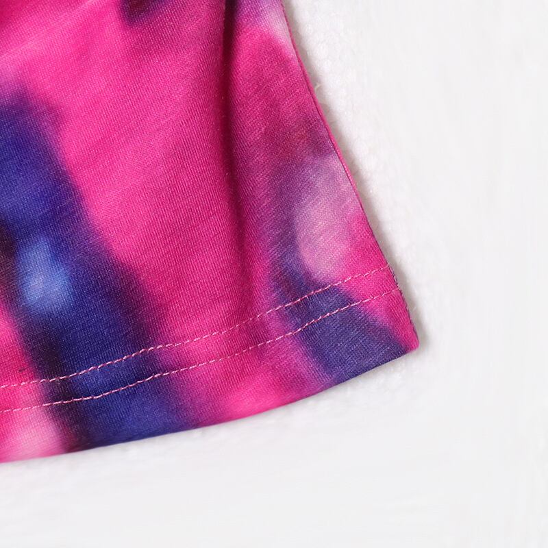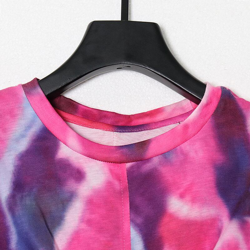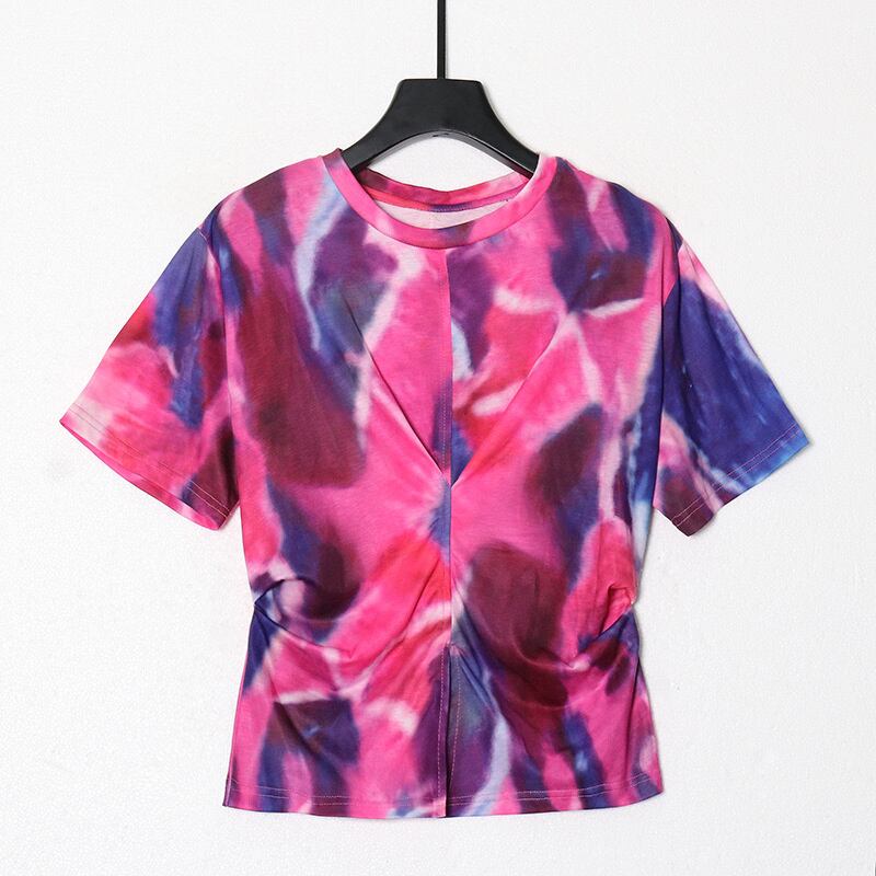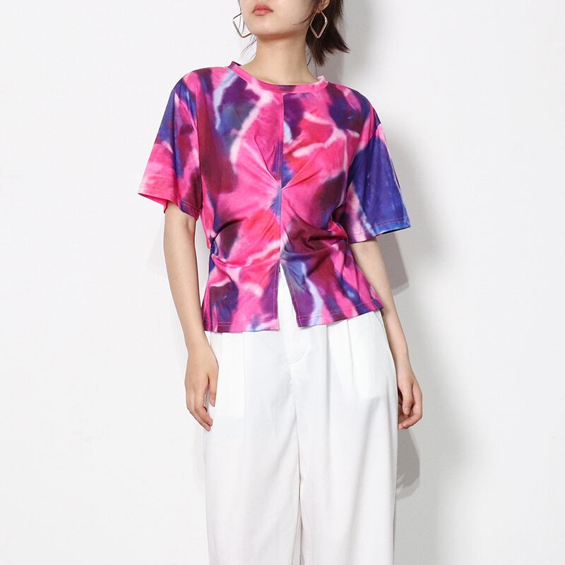 [EWQ] タイダイスプリット Tシャツコントラスト半袖不規則プリーツ Tシャツ夏潮トップ ショート ハーフスリーブ サマー 夏物