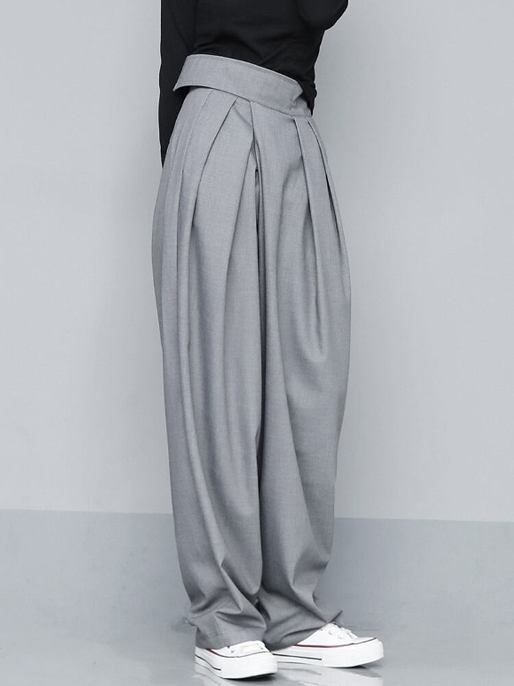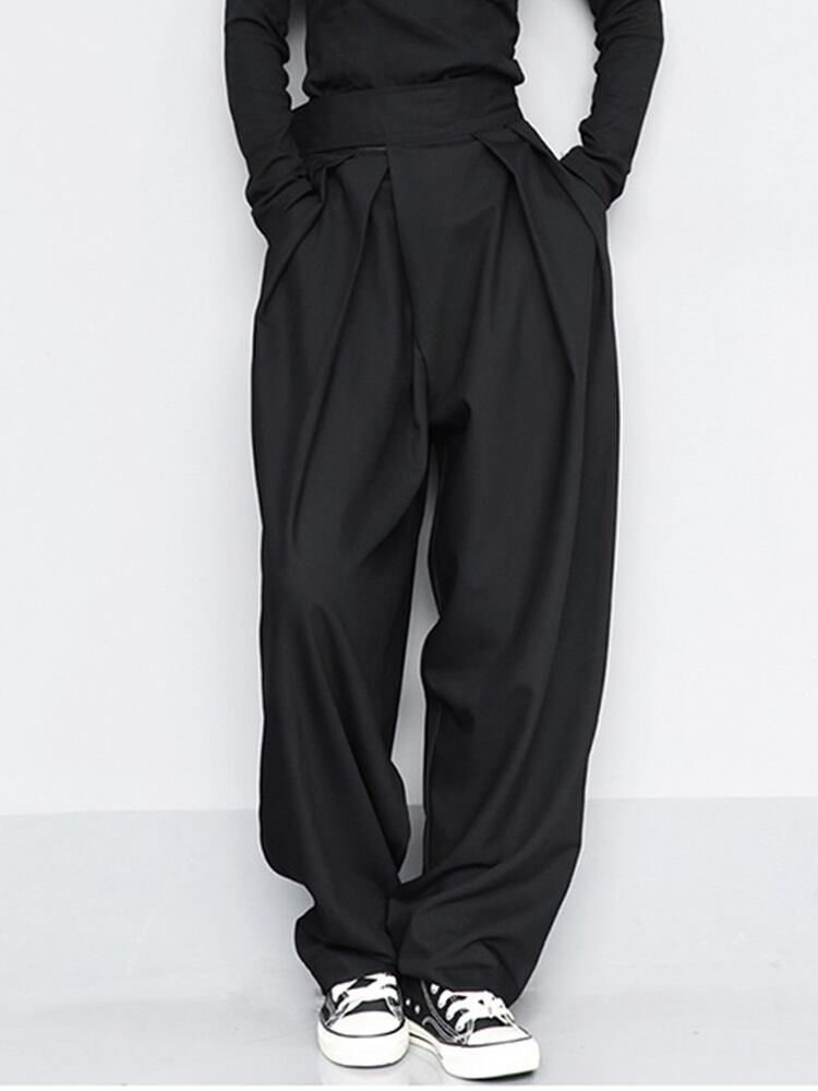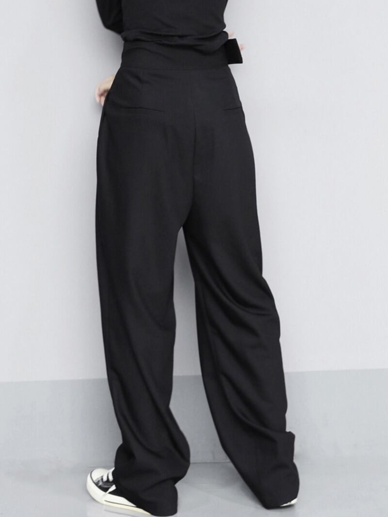 [EWQ] スーツパンツ気質ウエストプリーツ不規則ポケット包帯ワイドレッグパンツ秋潮 52 オータム 秋物 ワイドパンツ