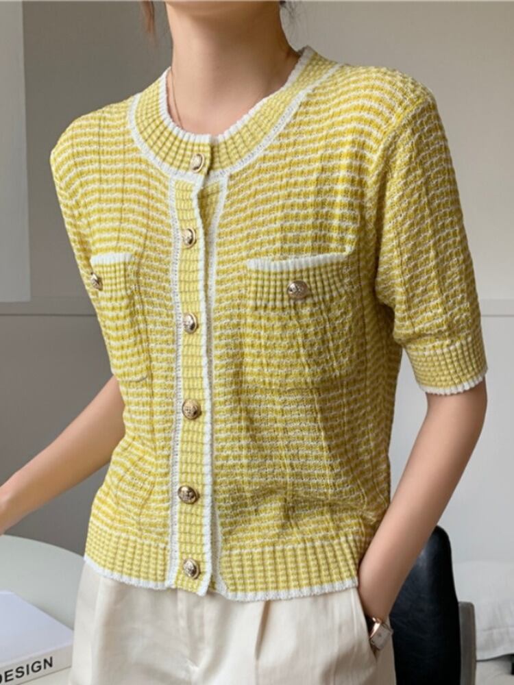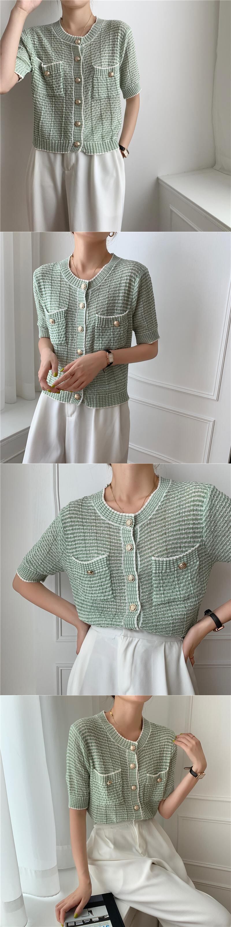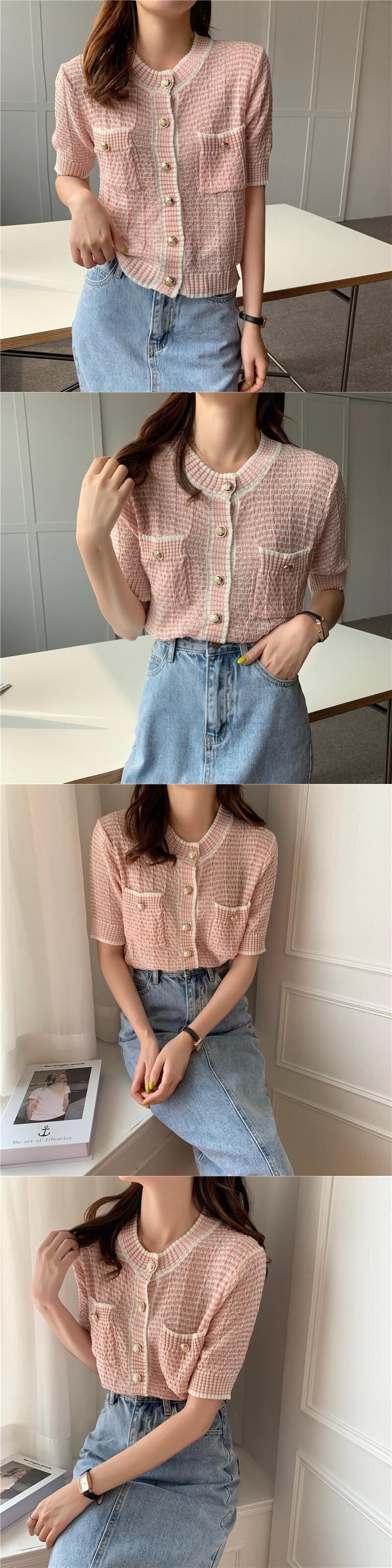 [EWQ] 甘い秋黄色セータージャケット服 O ネック半袖夏薄いカーディガンニットコート紫ショートトップ ハーフスリーブ 大人ガーリー スウィート キュート カジュアル サマー 夏物 オータム 秋物 Oネック パープル
