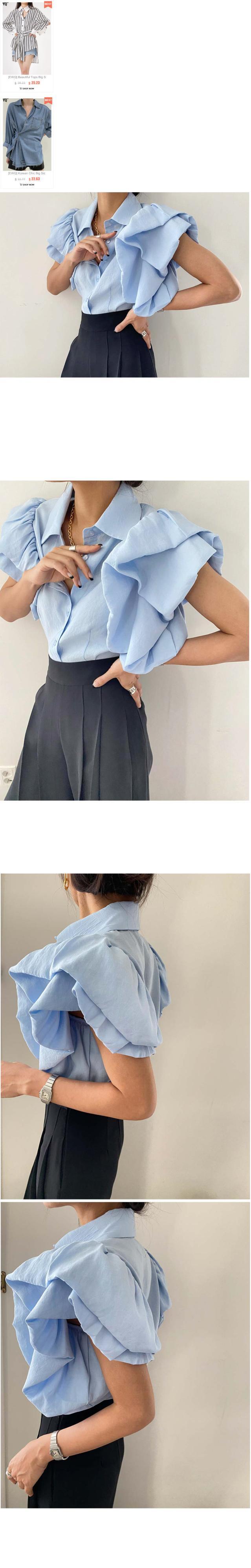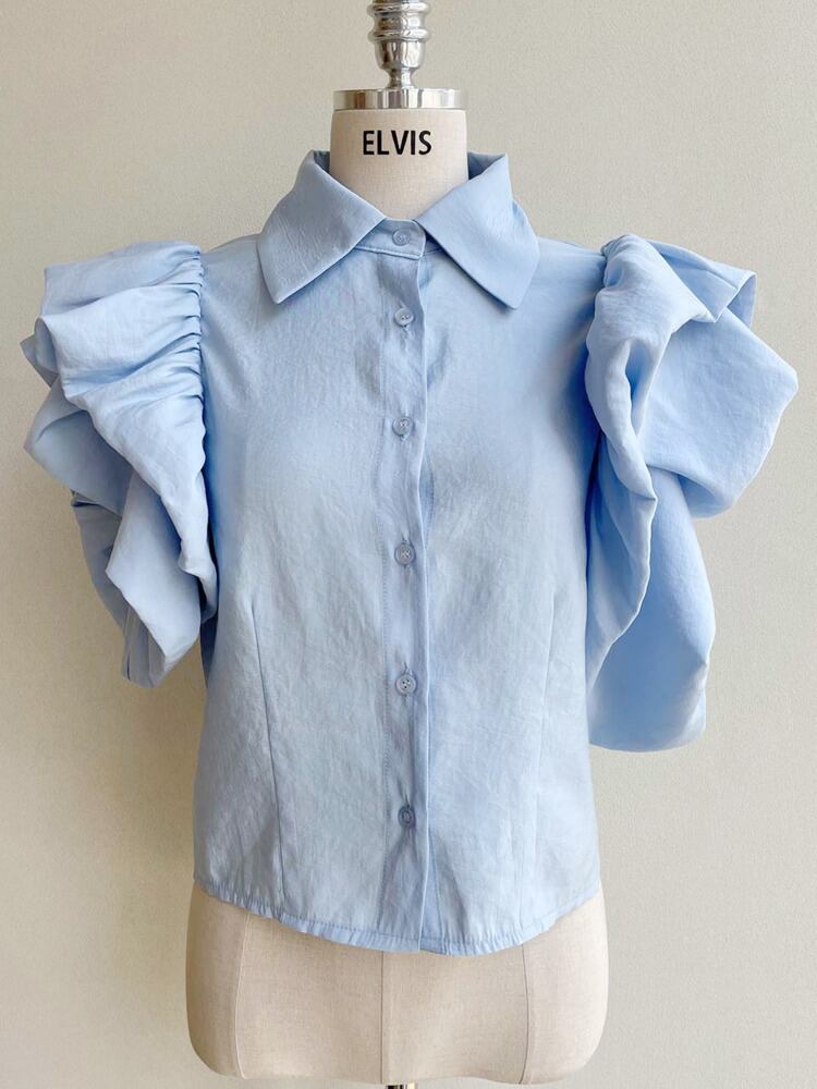 [EWQ] フォールド パッチワーク バブル スリーブ シャツ レディース ホワイト シングルブレスト サマー タイド トップ 夏物