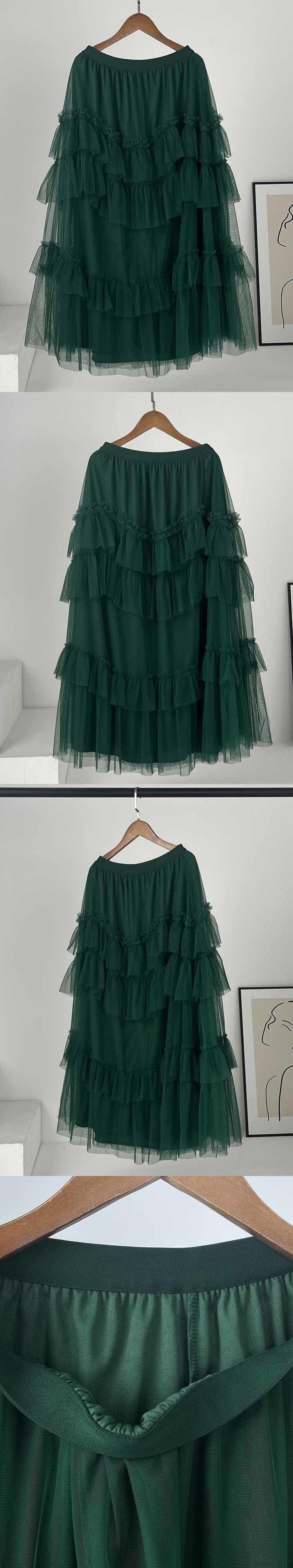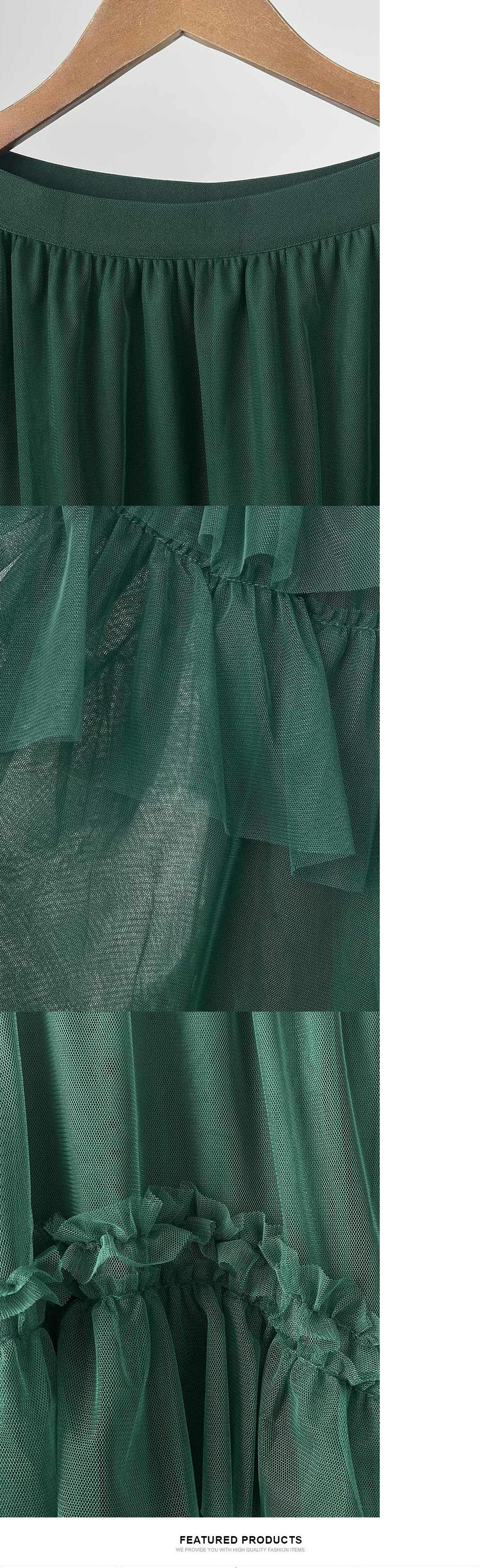 [EWQ] 甘いガーゼケーキスカート食用キノコミッドふくらはぎAラインスカート夏ダークグリーン 大人ガーリー スウィート キュート カジュアル サマー 夏物