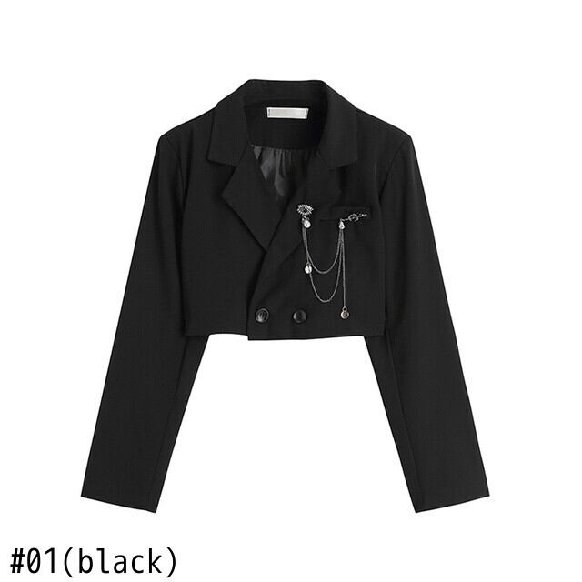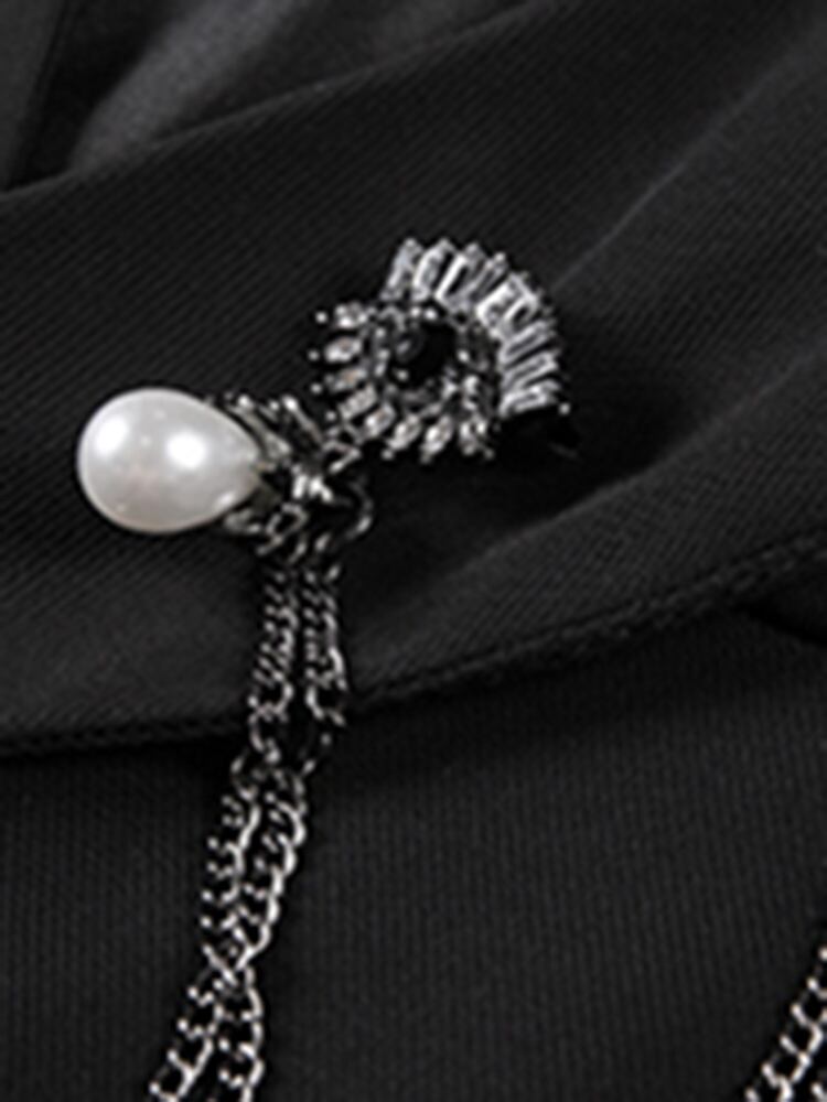 [EWQ] チェーンパールシック装飾ショートジャケット黒気質シングルブレストジャケットコート秋薄い生き抜く 59 ブラック オータム 秋物 真珠